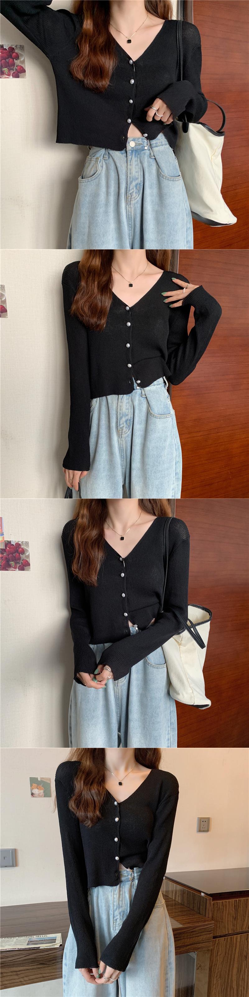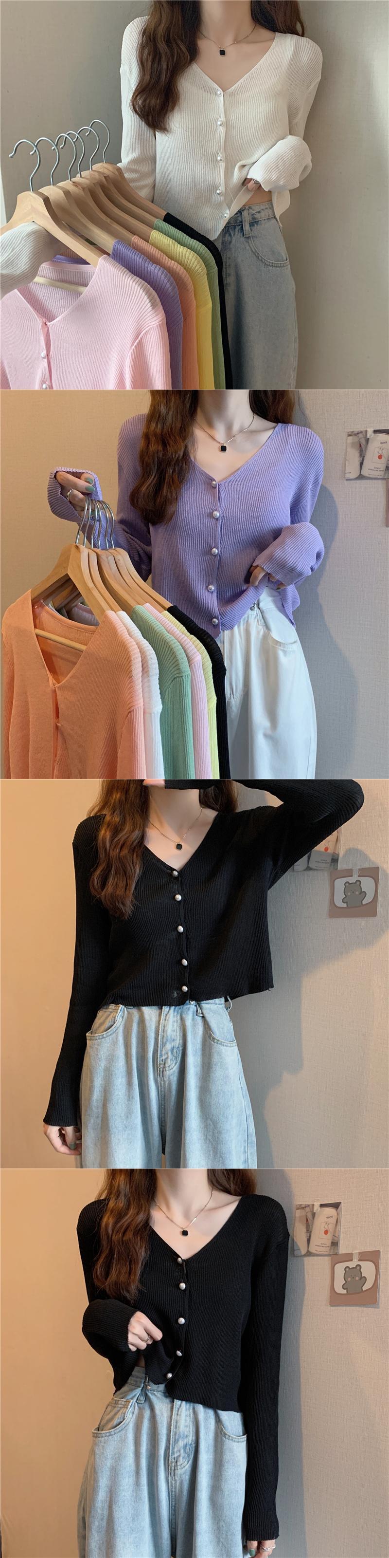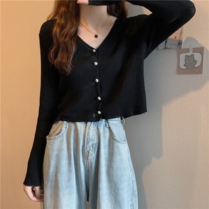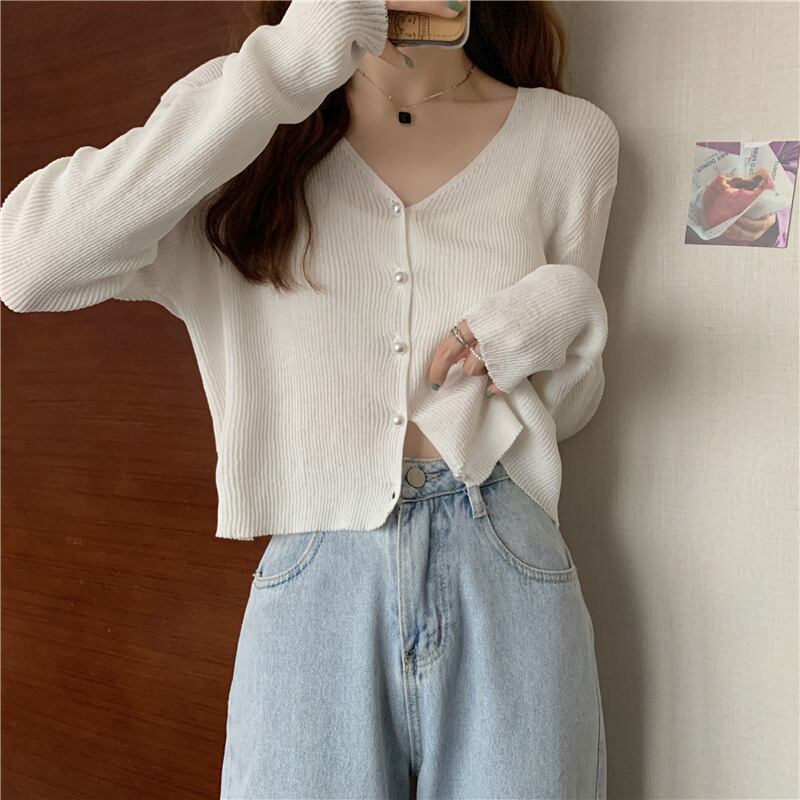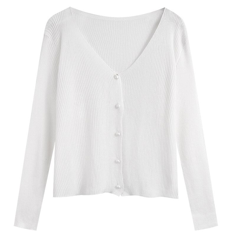 ニットセーター レディースサマー薄手Vネックカーディガンホワイトショートトップス ロング 夏物 1号婦人8999849578