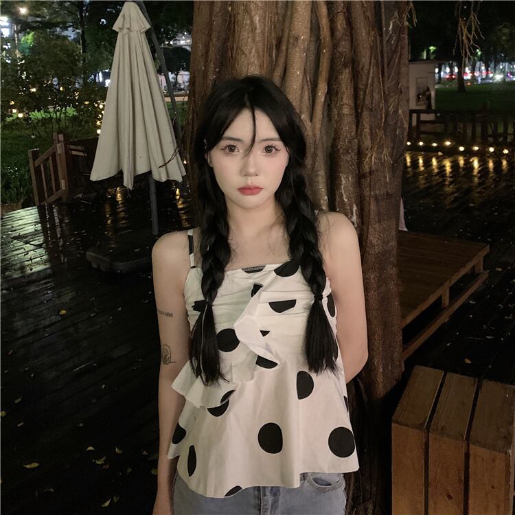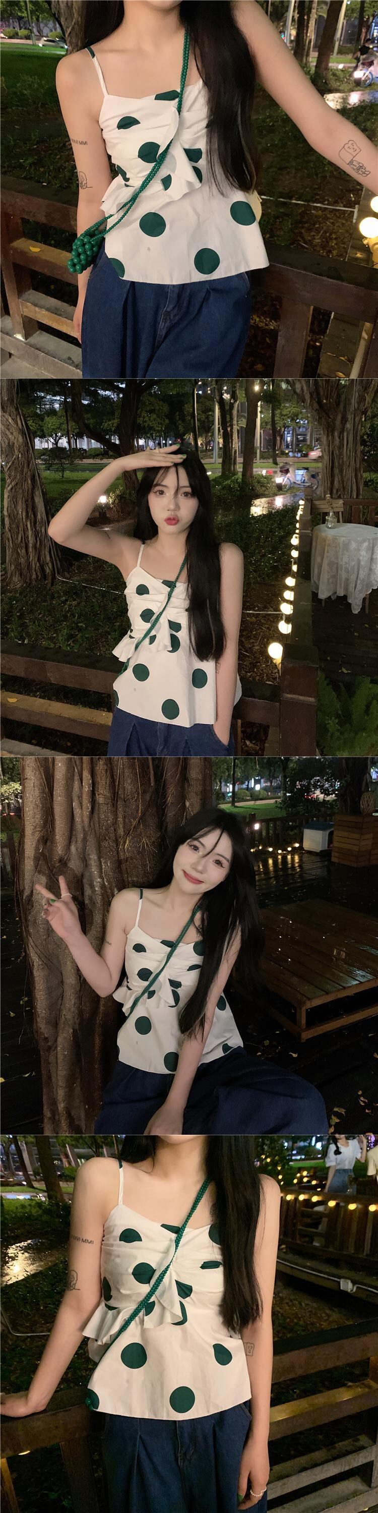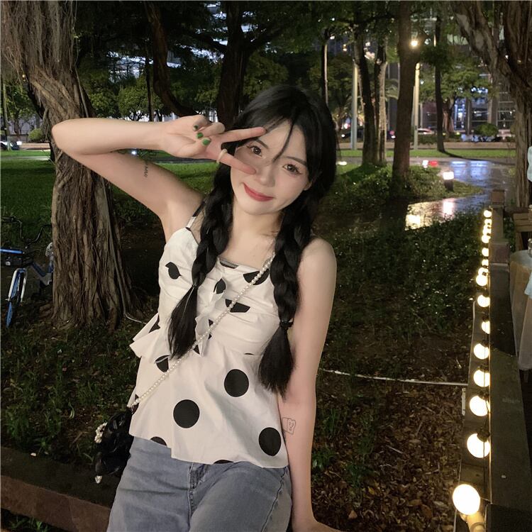 サマー水玉ノースリーブショートトップス 大人ガーリー スウィート キュート カジュアル 夏物 1号婦人57012810036
