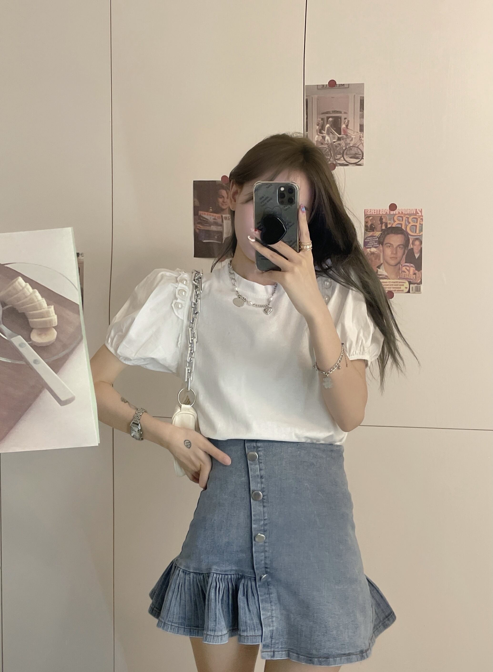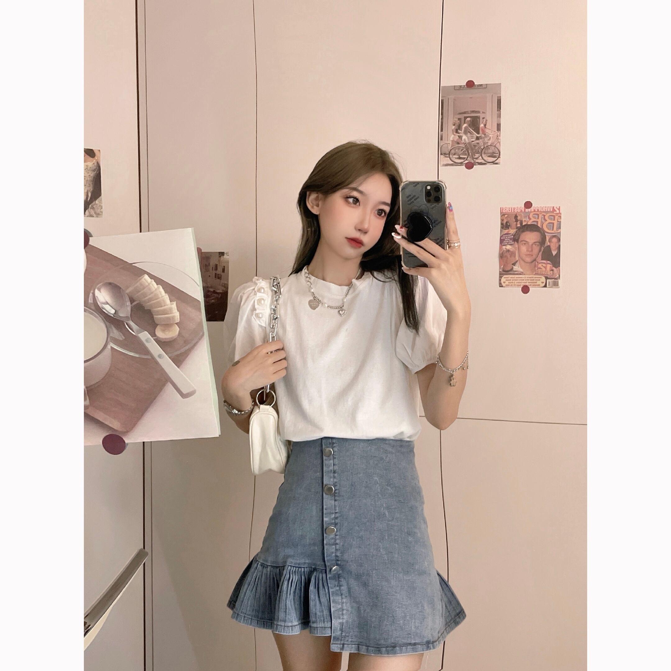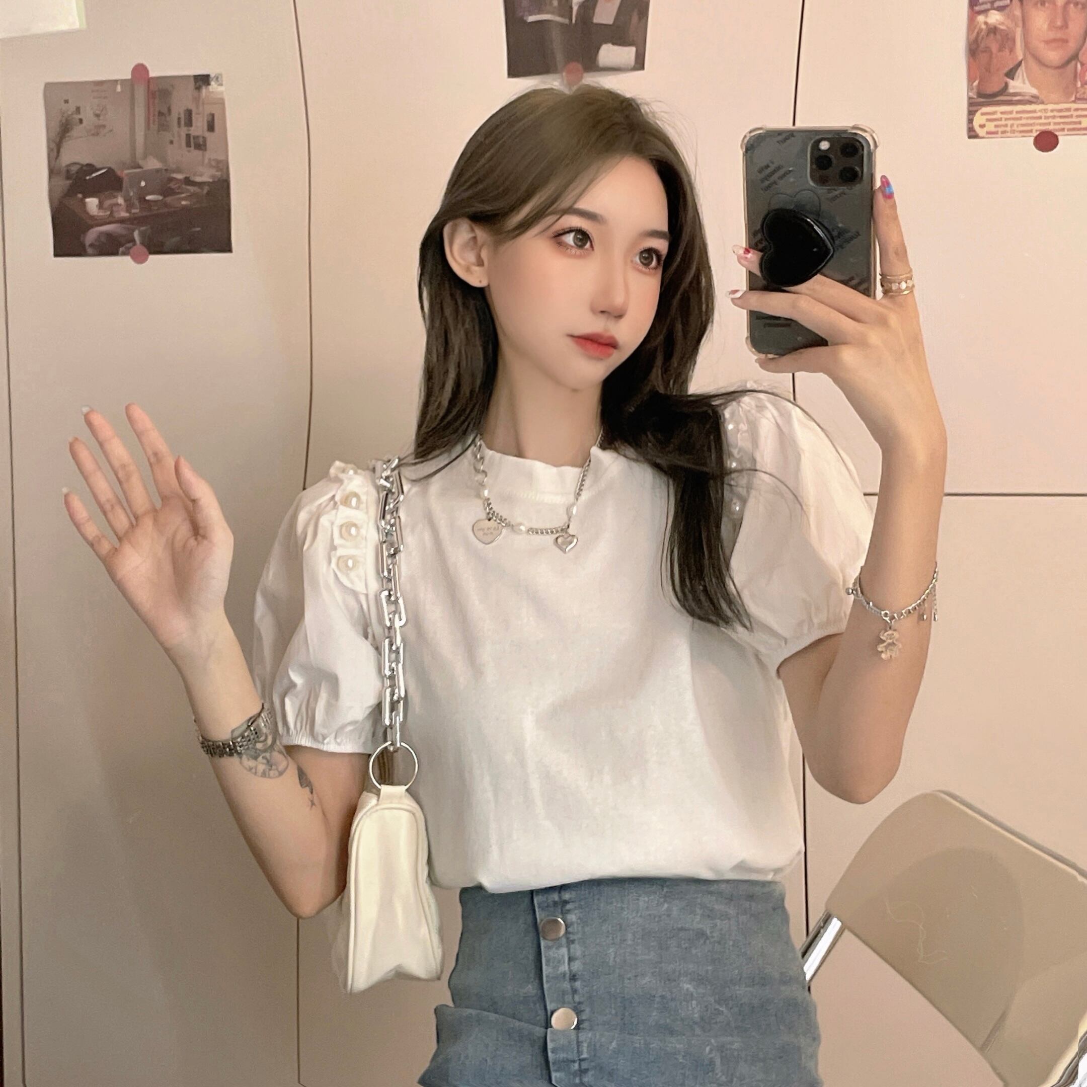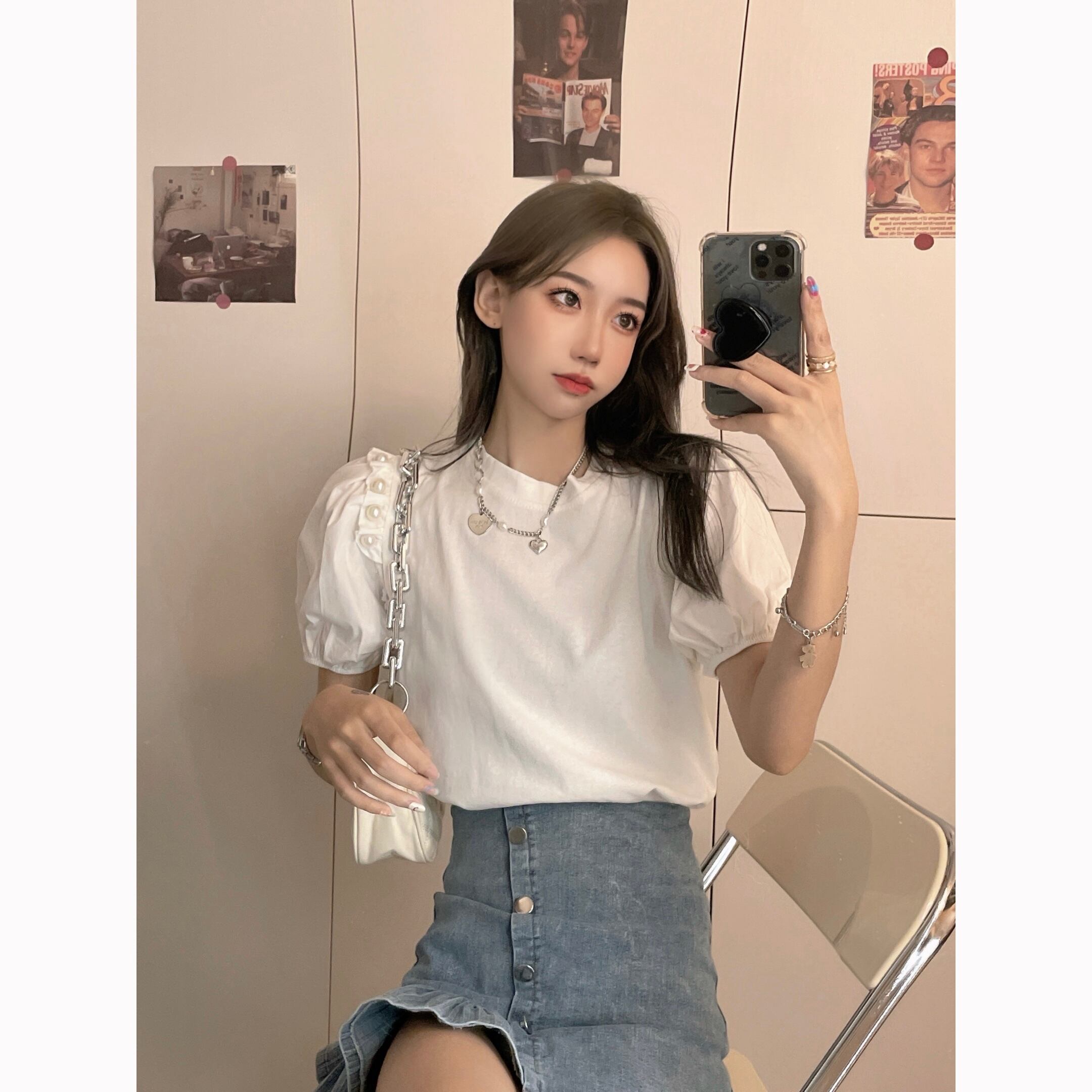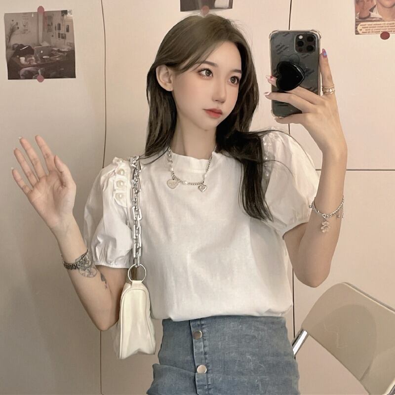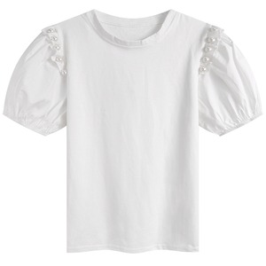 トップス サマーTシャツ シャツ 薄手スタンダードルーズスリーブホワイト レトロ 大人ガーリー スウィート キュート カジュアル 夏物 1号婦人24416721611