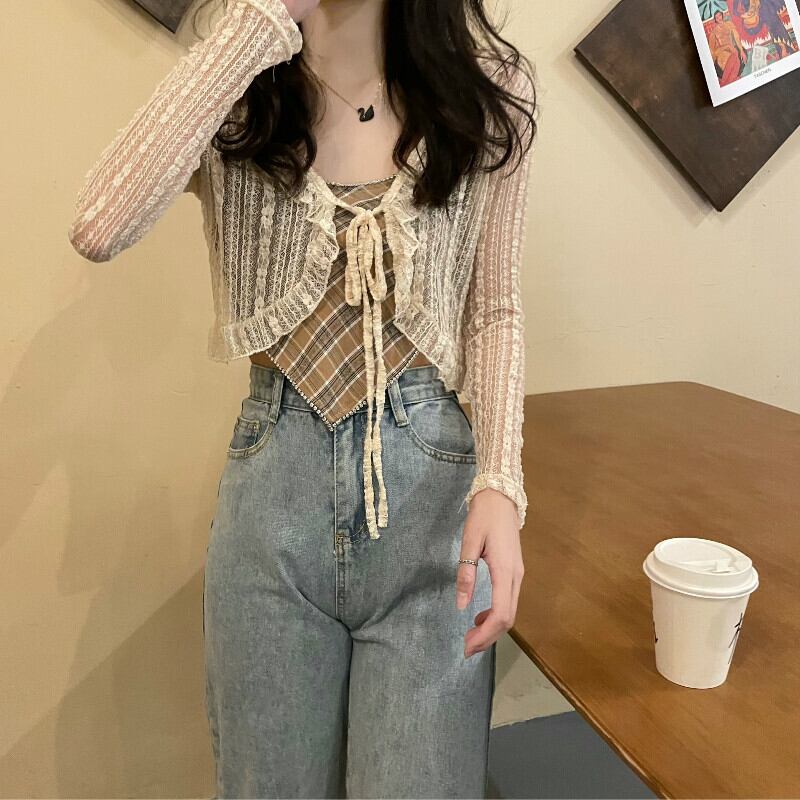トップス ノースリーブサマー薄手スタイルショート格子柄 夏物 1号婦人52642539010