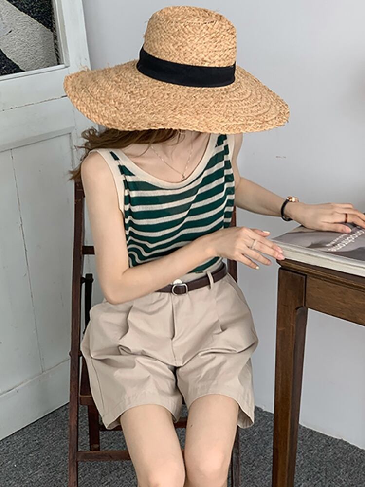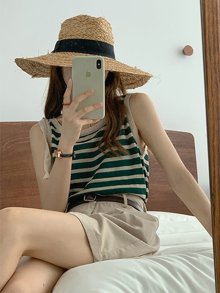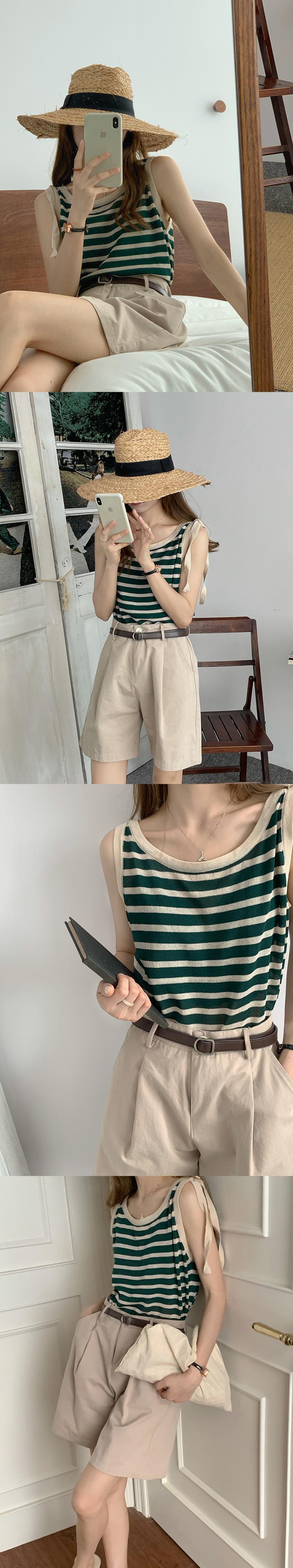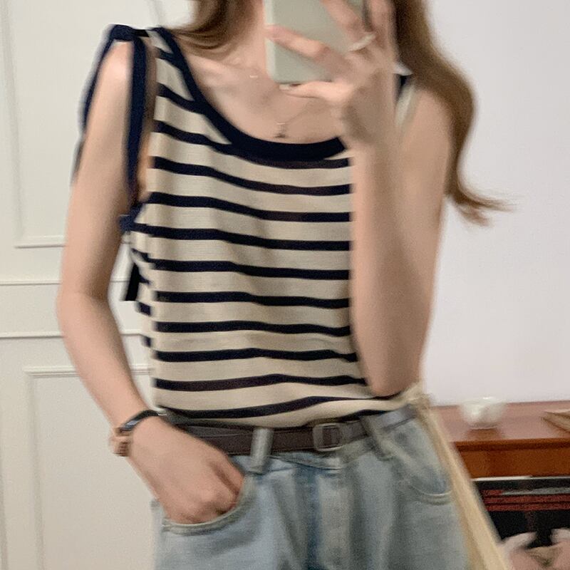 ストライプニットトップス レディースサマーノースリーブシャツ 夏物 1号婦人51333822304