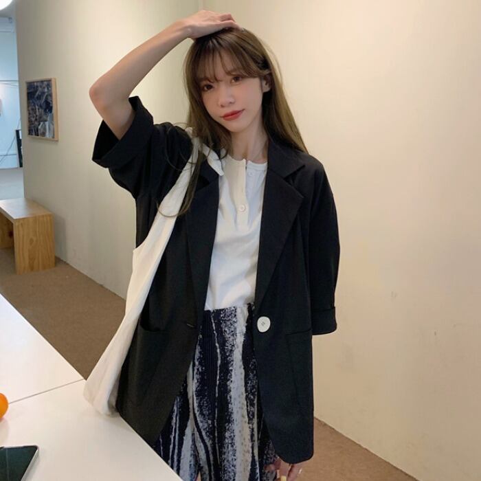 ブラックジャケット サマー薄手ルーズスリーブカジュアル ストリート 夏物 1号婦人64407392173