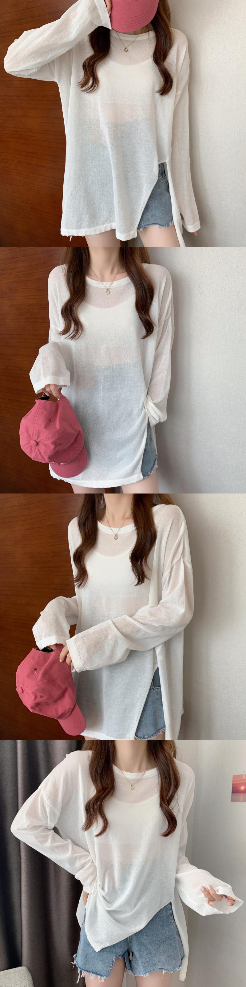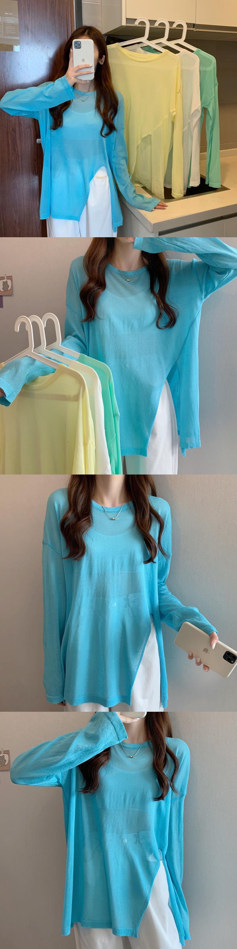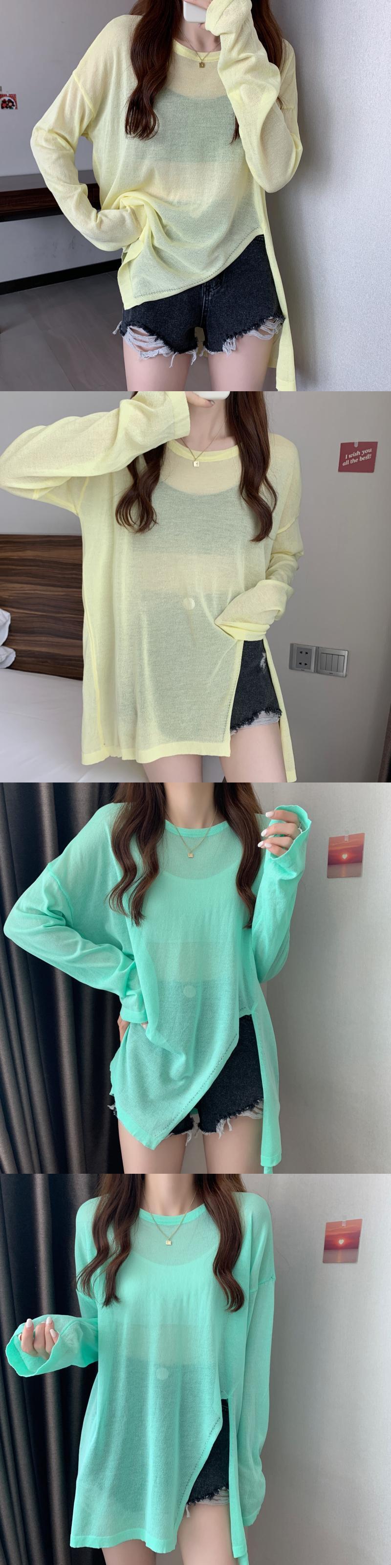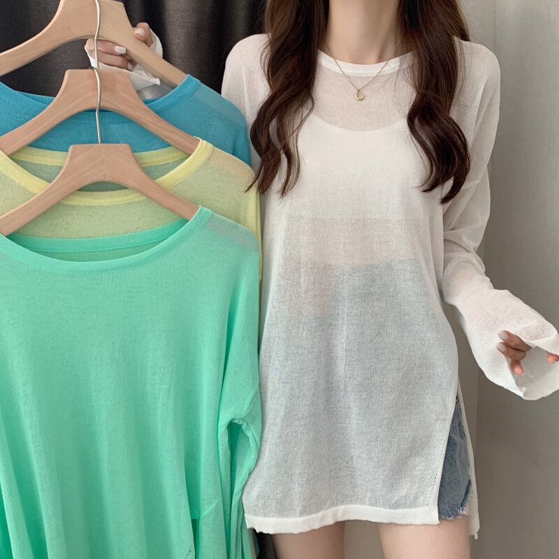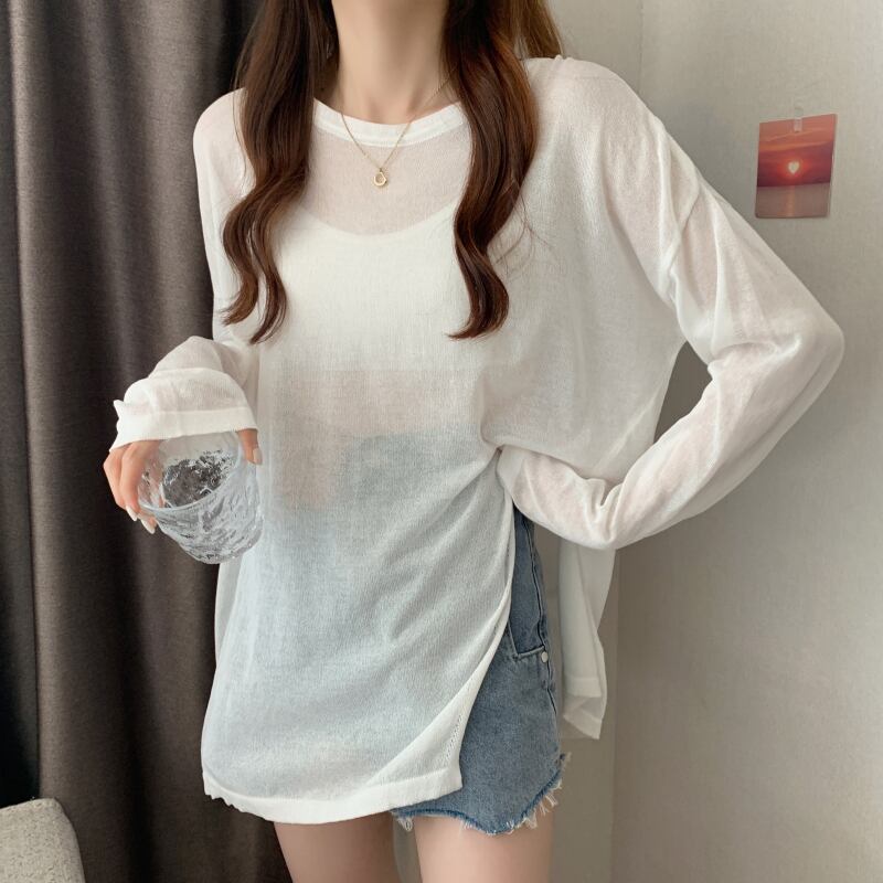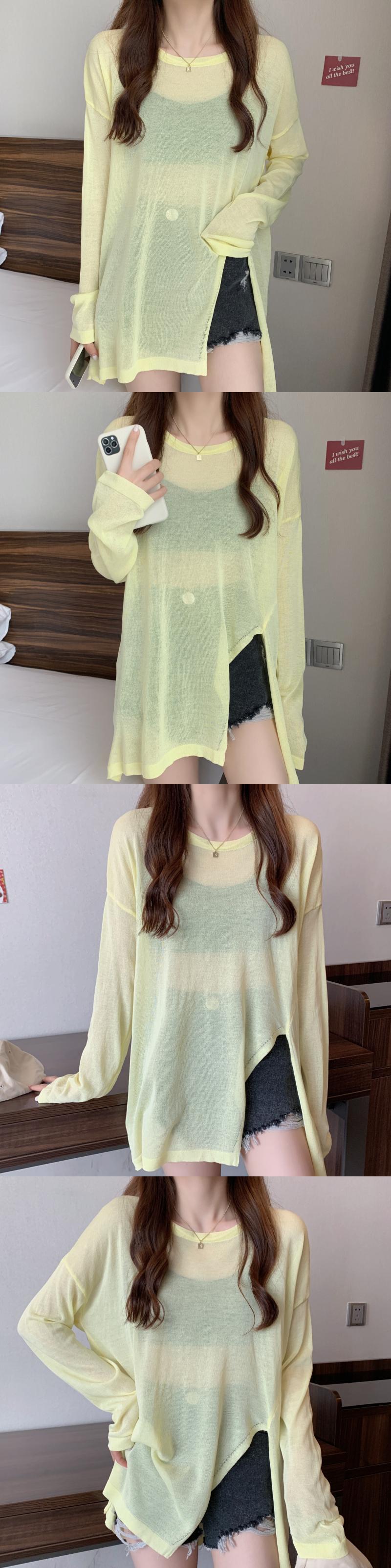 ニットセーター サマー薄手ルーズスリットブラウス トップス ロング 夏物 1号婦人44449792317