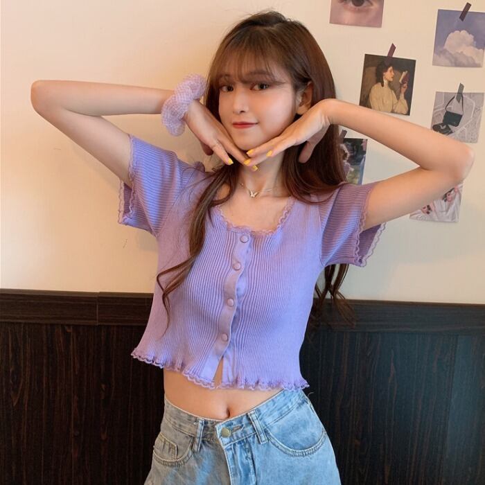 サマーニットセーター スリムショートトップス 薄手ブラックカーディガン 夏物 スクウェア 1号婦人60466226951
