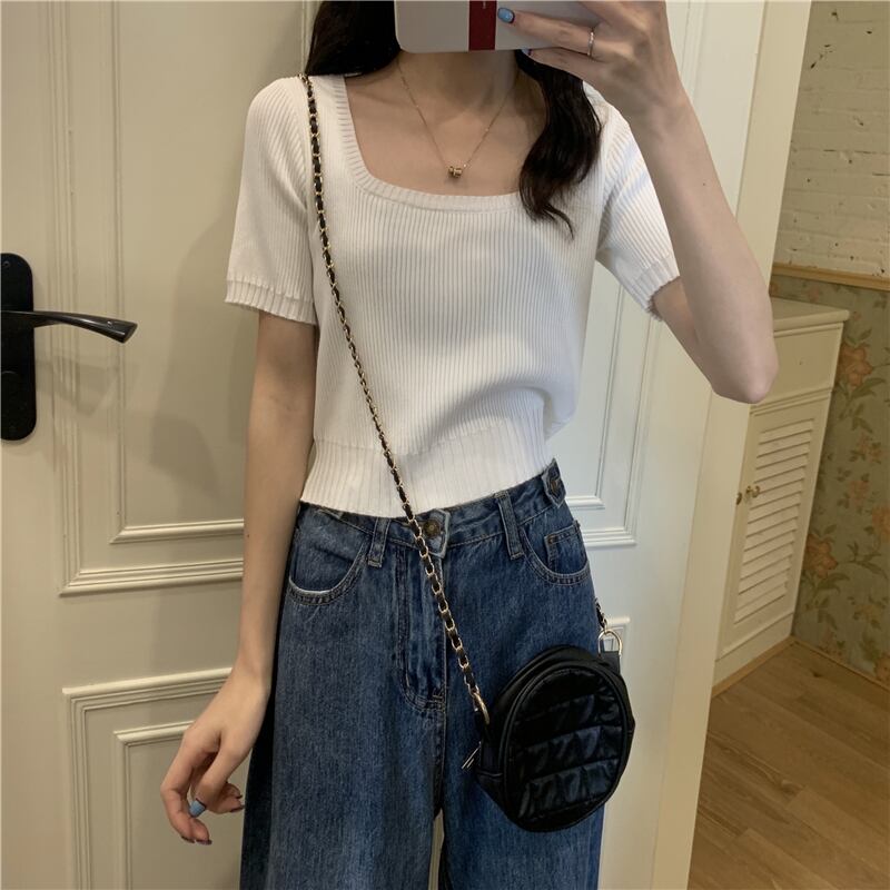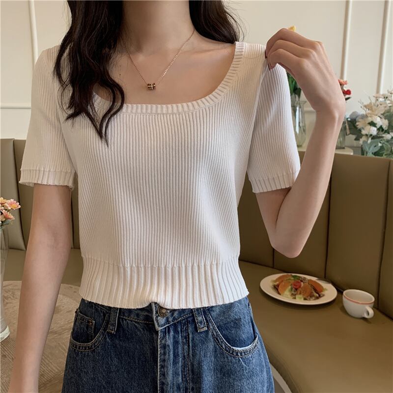 薄手セーター レディースサマースリムスタイルショートトップス 夏物 シルク スクウェア 1号婦人80695604175