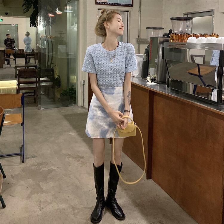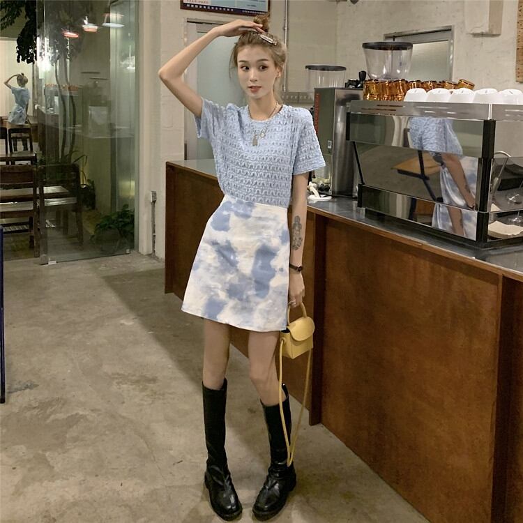 色:ホワイトトップ,ブルートップ,青いスカート,黒とグレーのスカート