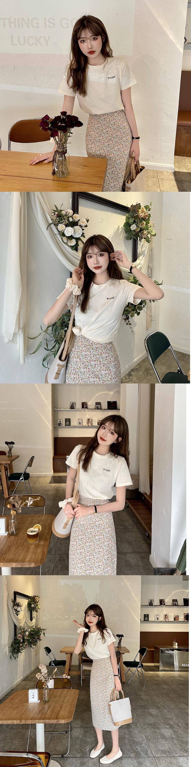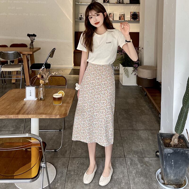スプリングサマースタイルハイウェストウェストフローラルスカート Tシャツ セット 春物 夏物 花柄 1号婦人20269362489