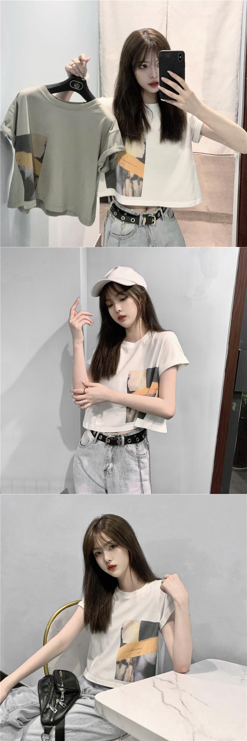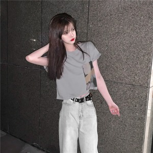 プリントホワイトショートTシャツ サマースタイルトップス 夏物 1号婦人10085784207