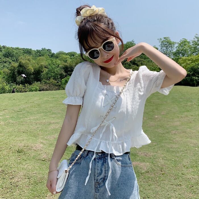 シャツ スプリングサマーショートカラースタイルトップス 春物 夏物 スクウェア 1号婦人56063345672