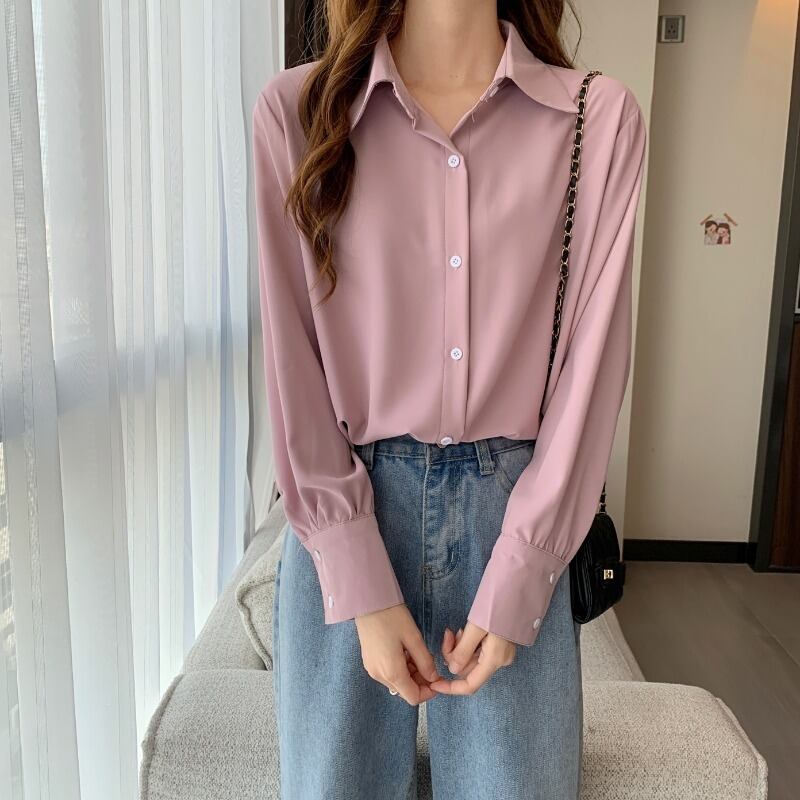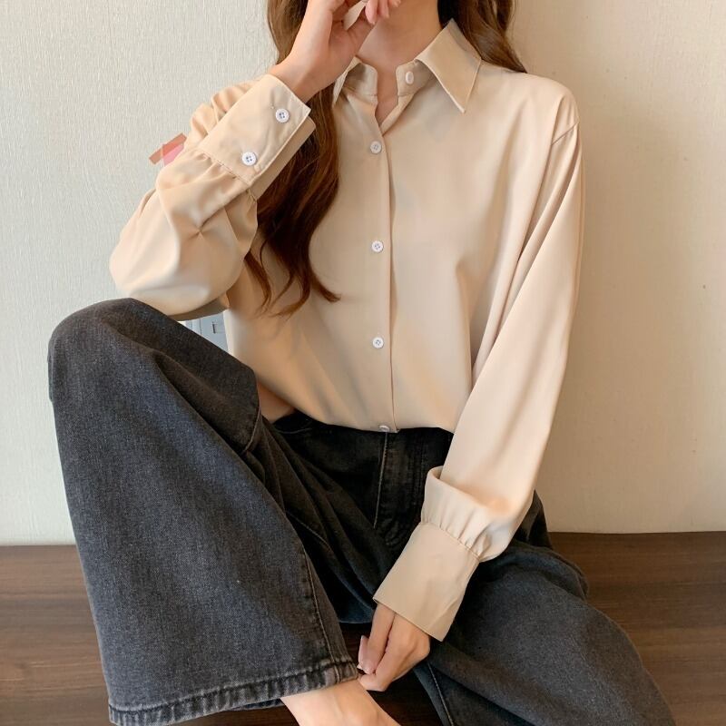 シャツ スプリングオータムソリッド カラーシングルブレスト 春物 秋物 ソリッドカラー 1号婦人25450317980