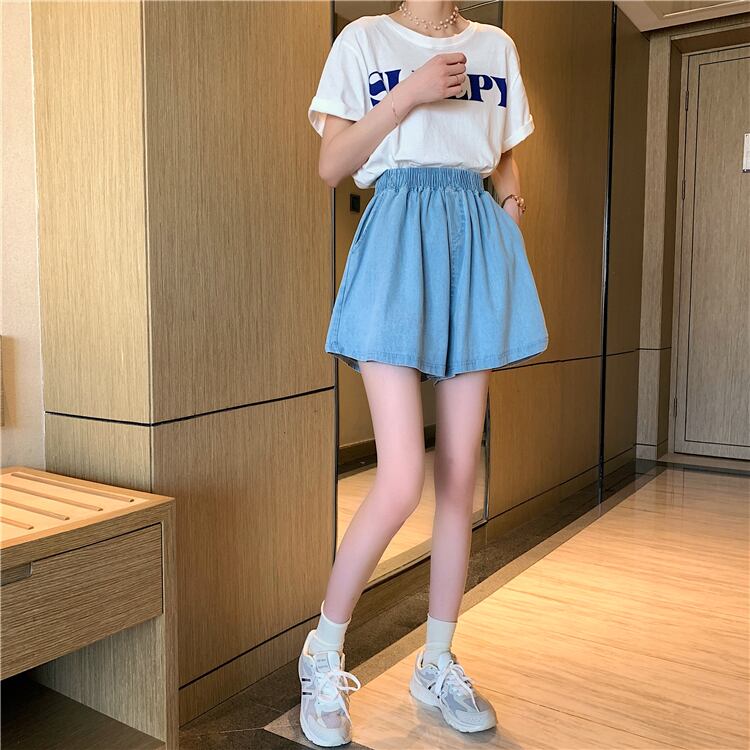 ブラックパンツ サマー薄手ルーズAラインショーツ ハイウェストウェストカジュアル 夏物 ブルマー 1号婦人24399066864