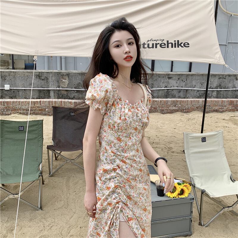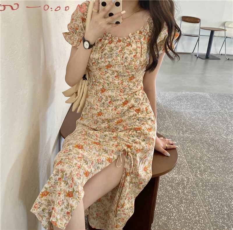サマードレス フローラルスリーブスカート 大人ガーリー スウィート キュート カジュアル 夏物 花柄 スクウェア 1号婦人19908033321