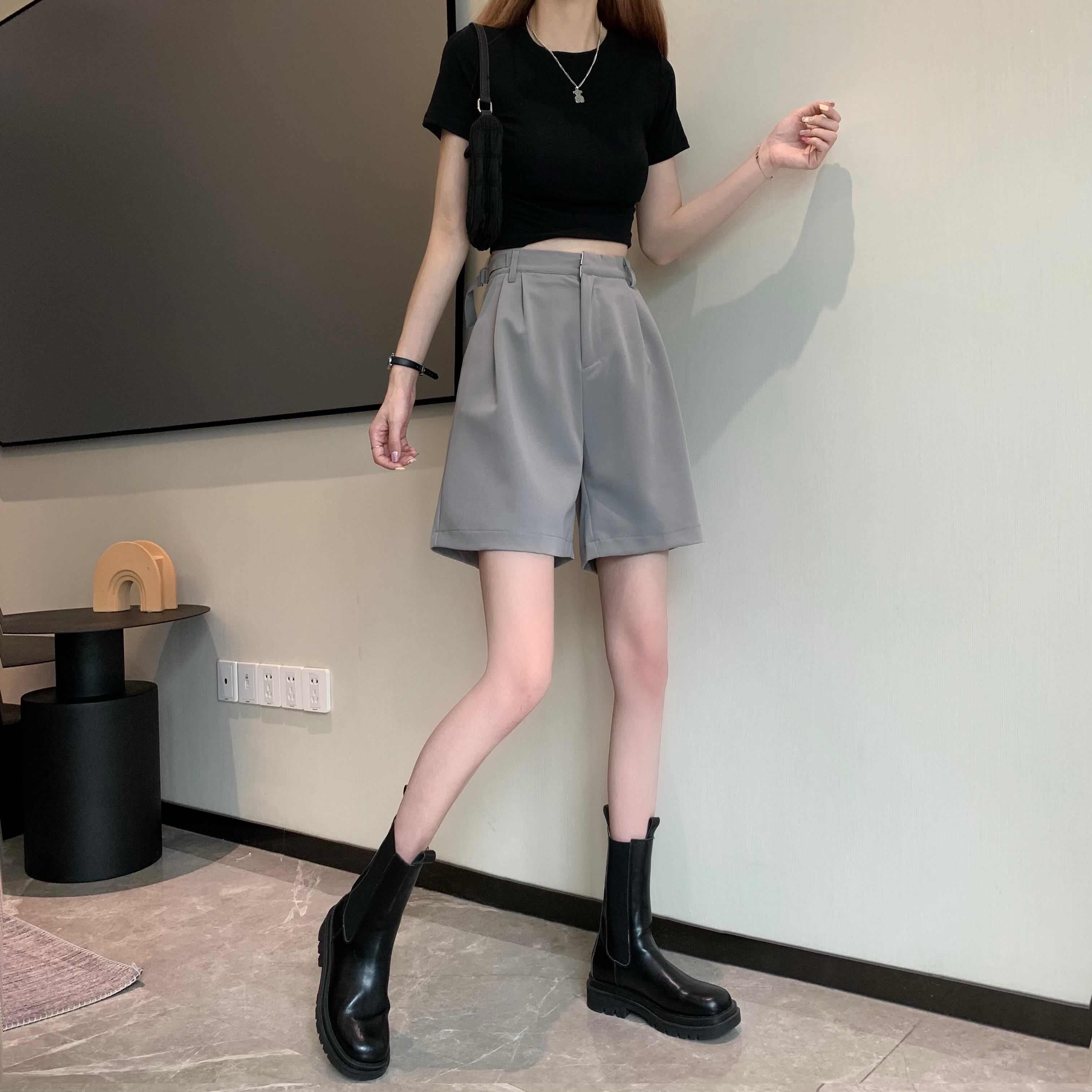 サマーカジュアルパンツ レディースハイウェストウェストスリムワイドレッグショーツ ストリート 夏物 ブルマー ワイドパンツ 1号婦人65705993442