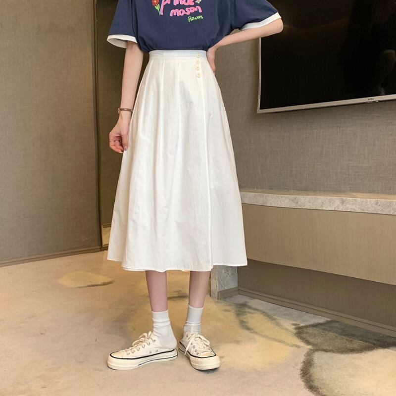 Aラインスカート サマー薄手ハイウェストプリーツホワイト 夏物 1号婦人37696870475