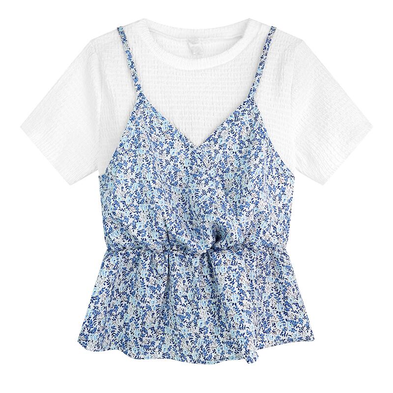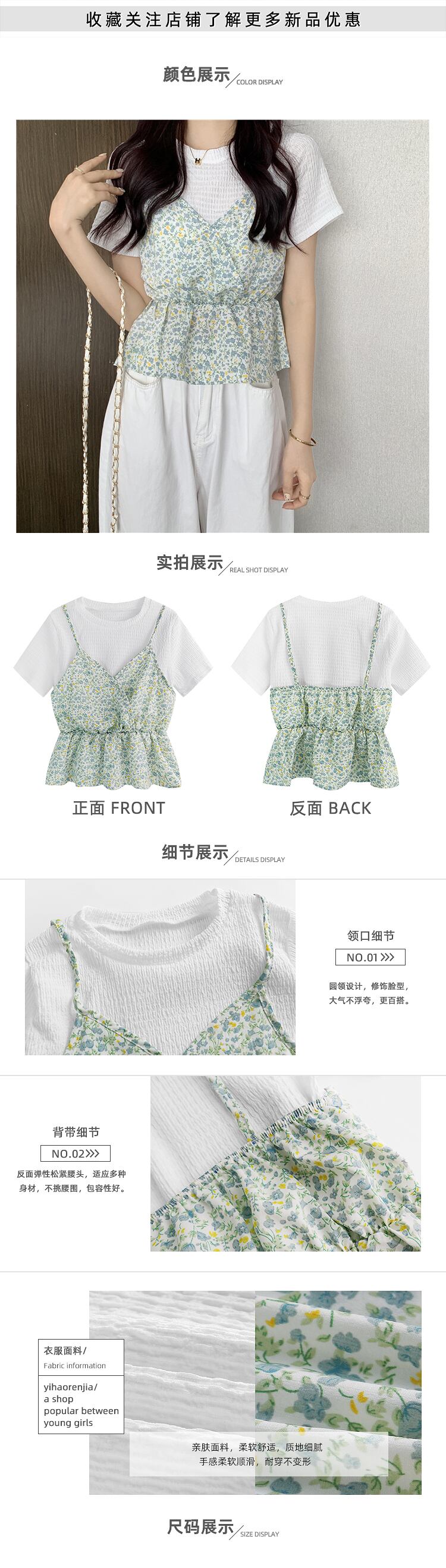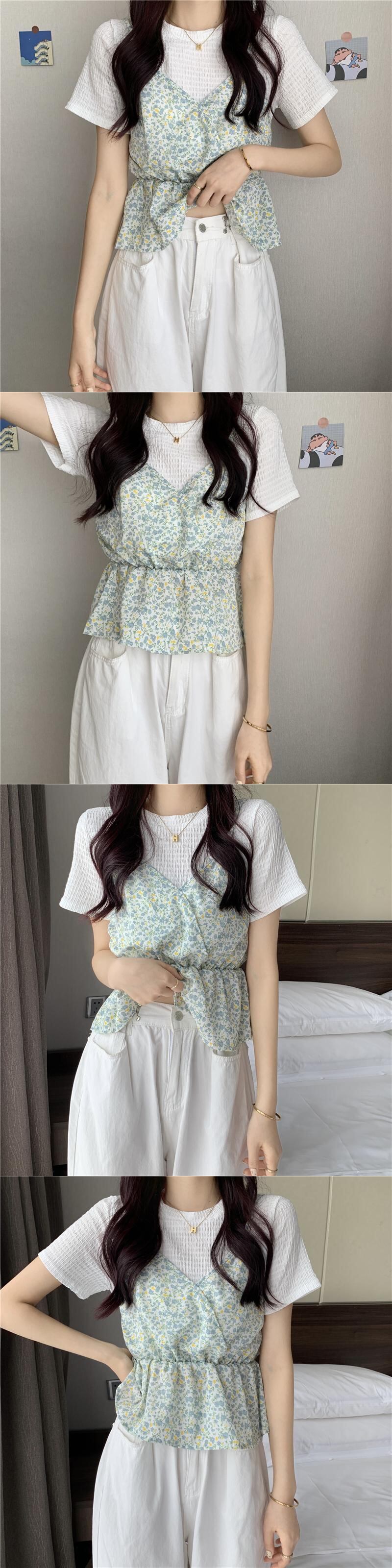 シャツ ラウンドネックフローラルツーピース薄手トップス 花柄 Oネック ステッチ 1号婦人10312343963
