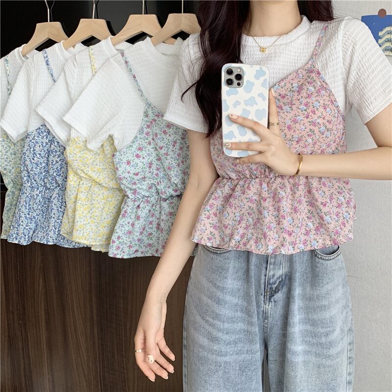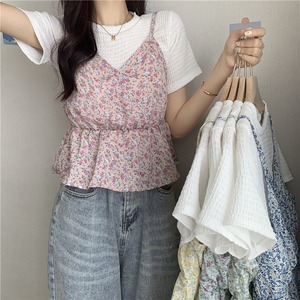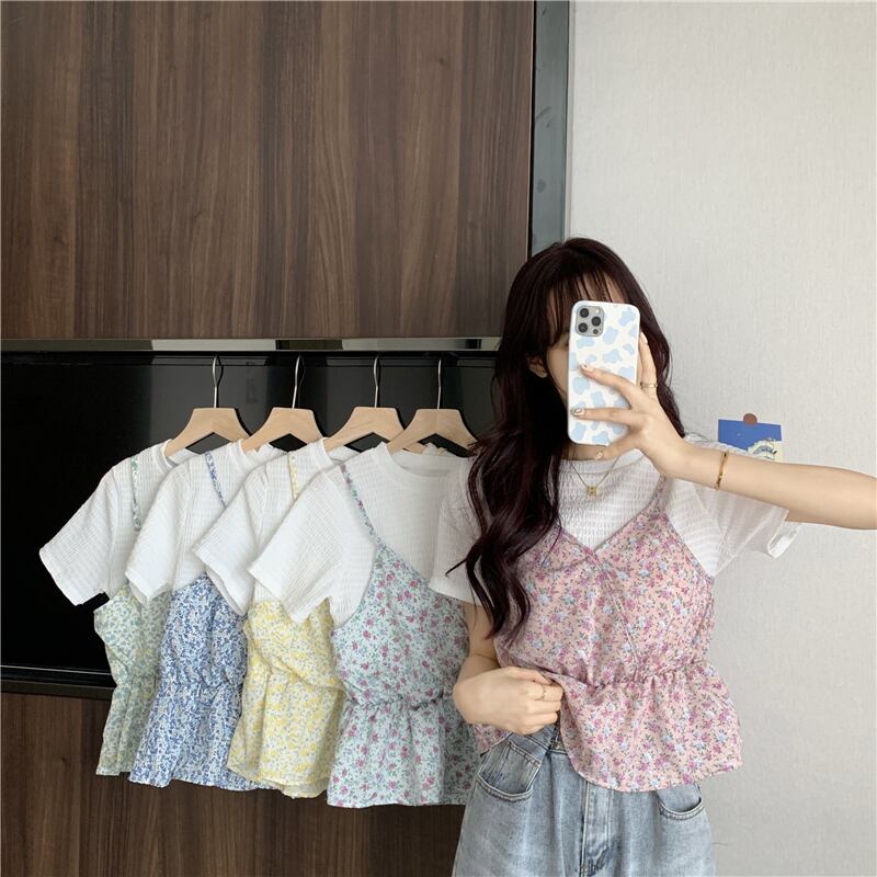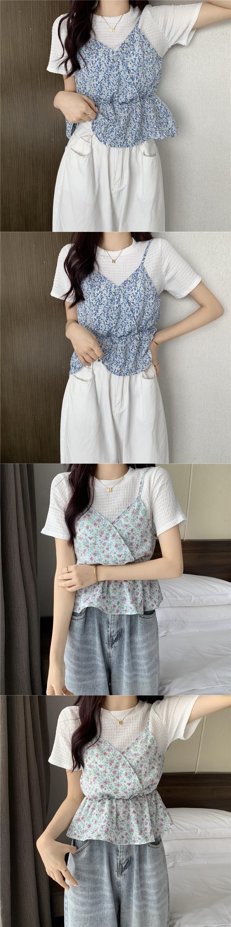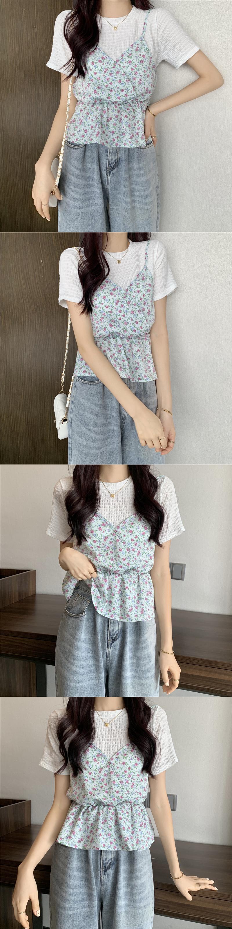 シャツ ラウンドネックフローラルツーピース薄手トップス 花柄 Oネック ステッチ 1号婦人10312343963