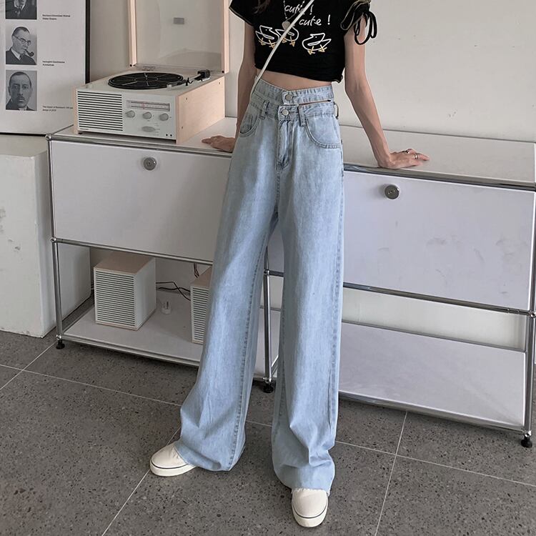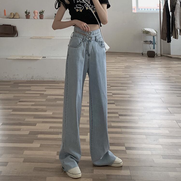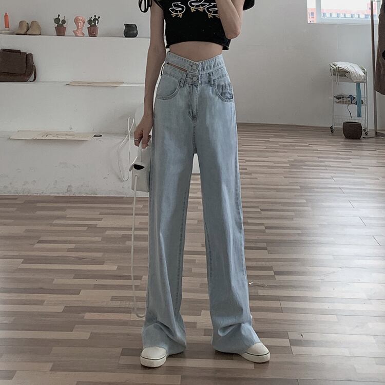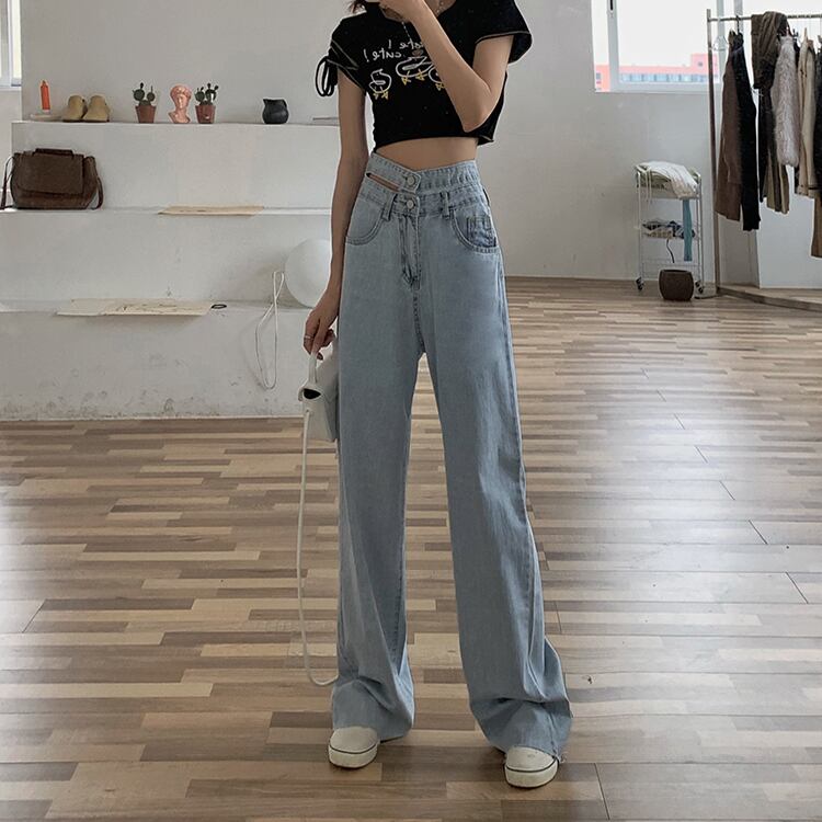 サマージーンズ ハイウェスト薄手ルーズパンツ 夏物 1号婦人19035981673
