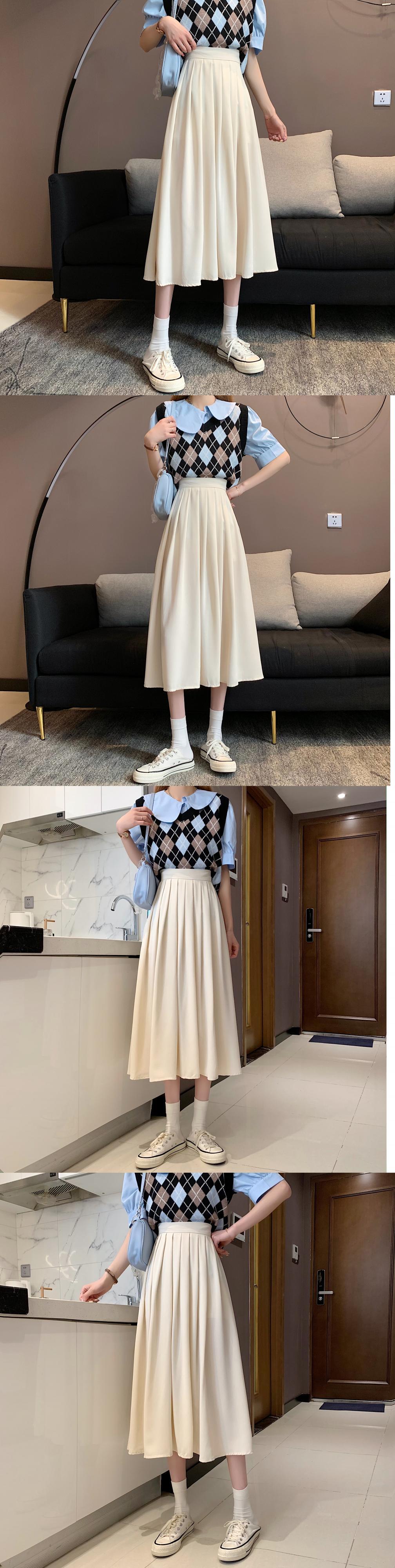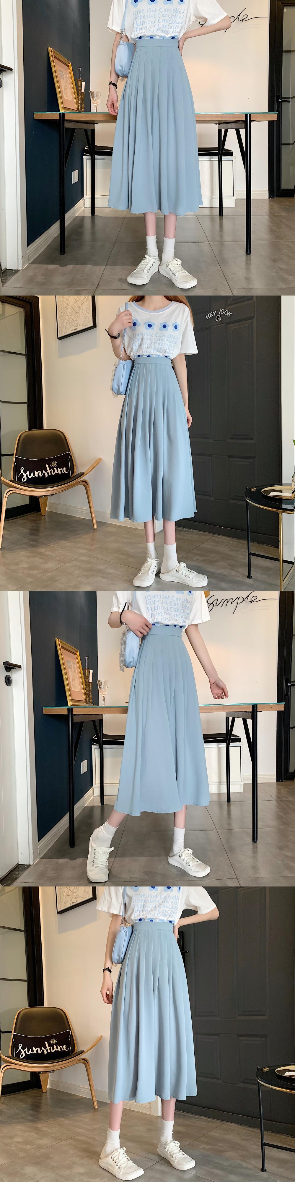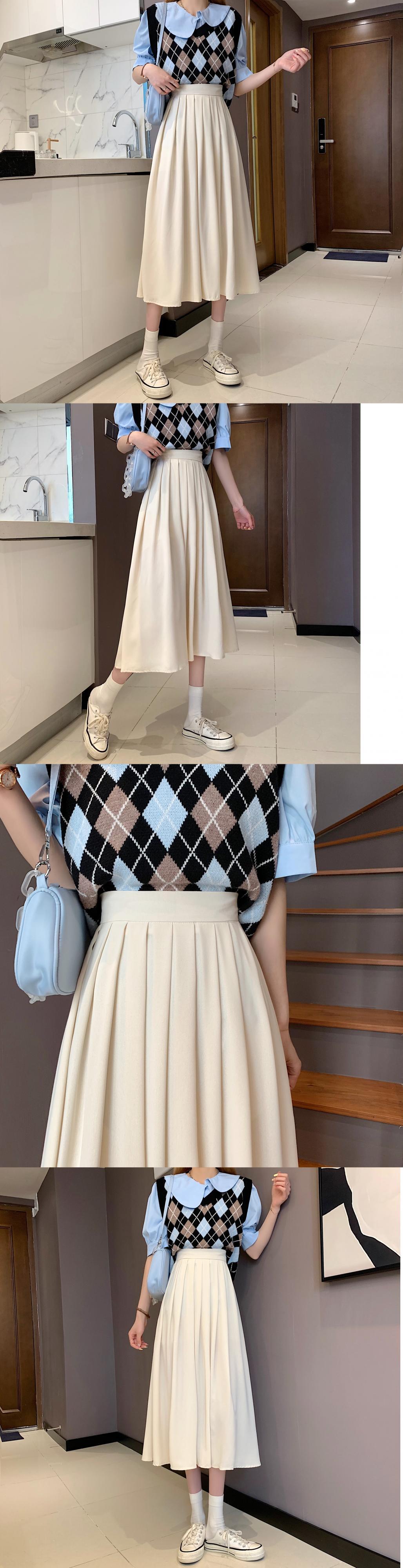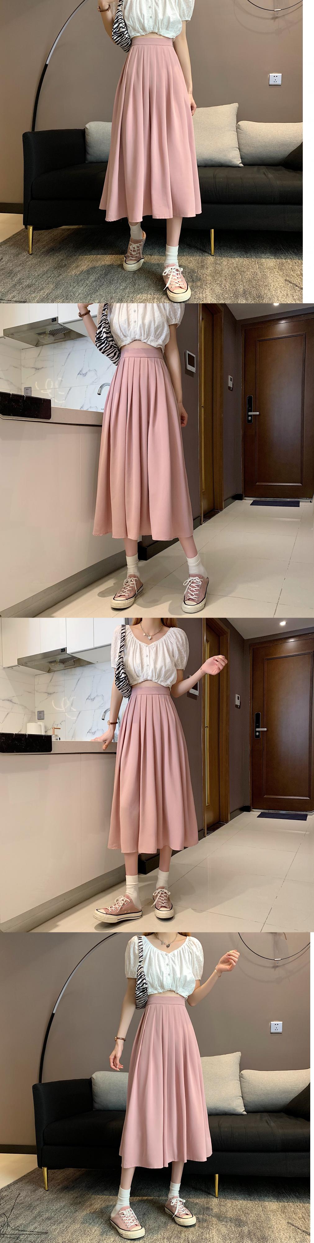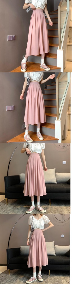 Aラインスカート サマーハイウェストプリーツカジュアルスリム 夏物 1号婦人16847400641