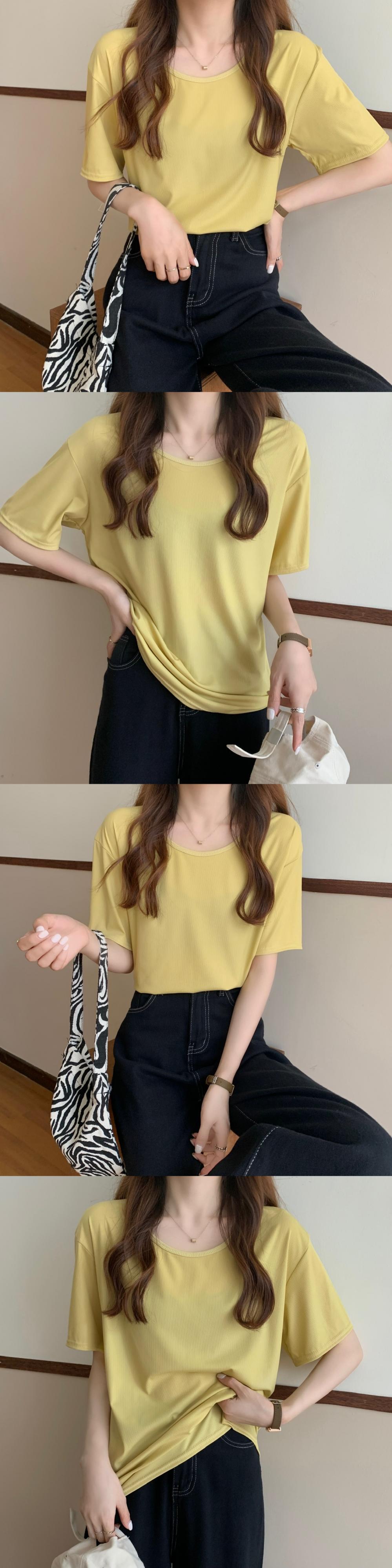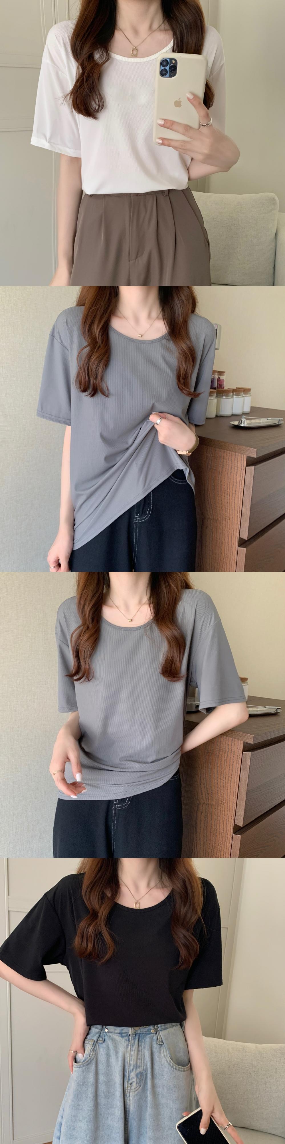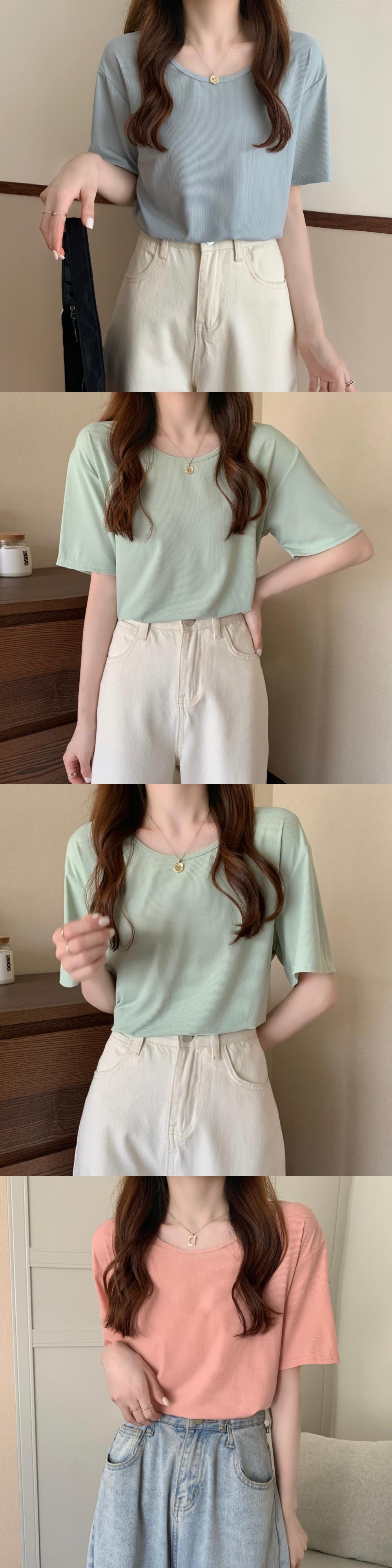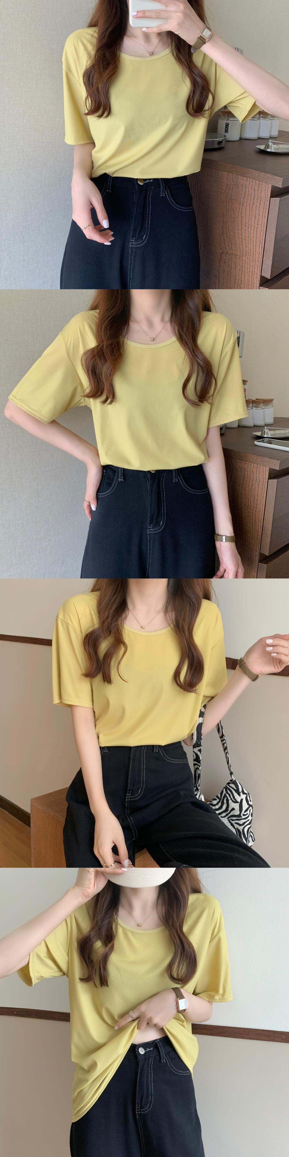 薄手サマーラウンドネックTシャツ ベーシックルーズトップス 夏物 Oネック 1号婦人30843408253