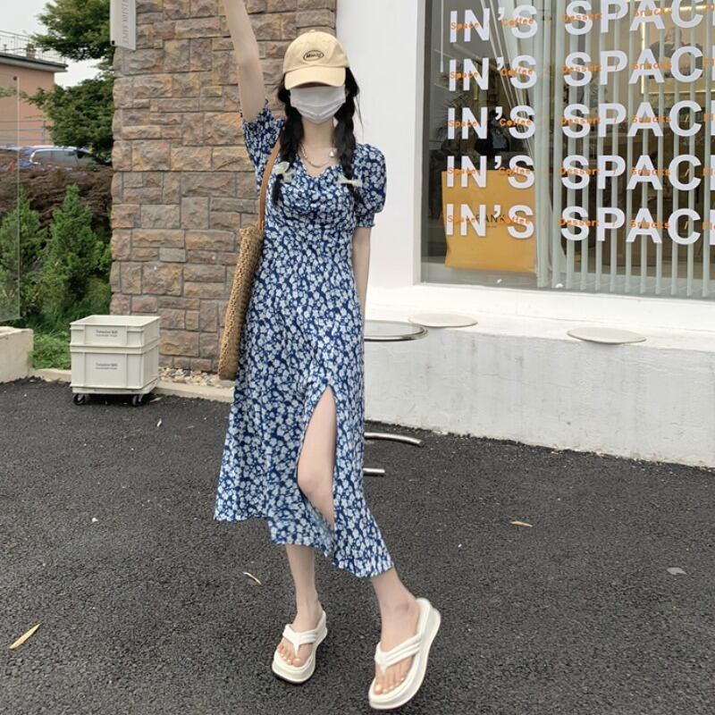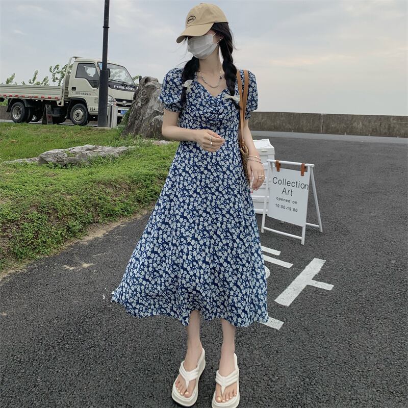 スタイルフローラルウェストVネックスカート サマードレス 夏物 花柄 1号婦人90288158780