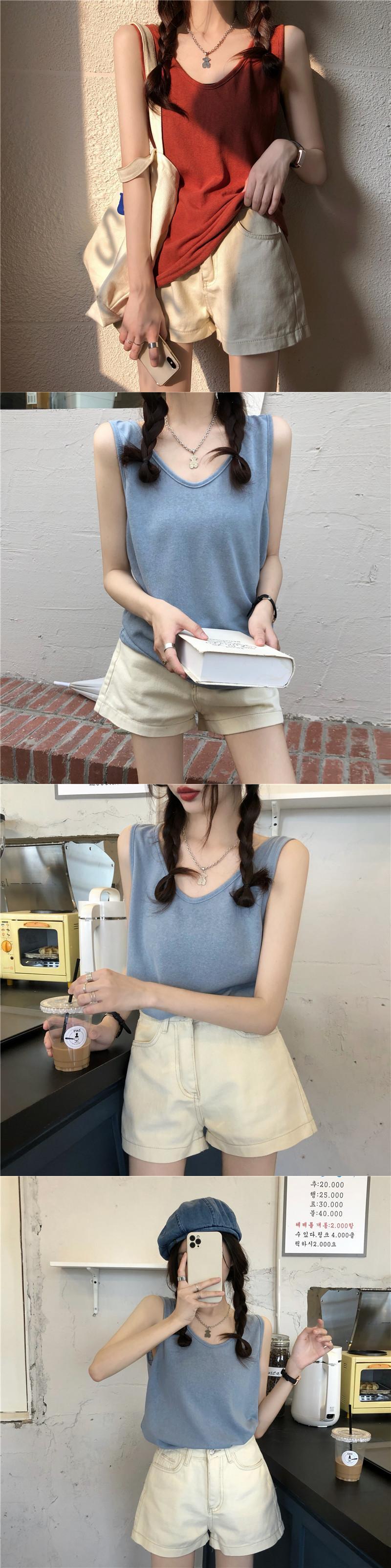 サマー薄手ノースリーブVネックシャツ ブラウス 夏物 1号婦人2001729862