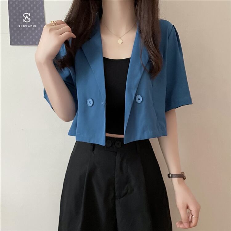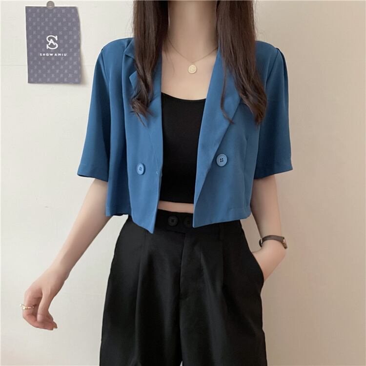 ブラックジャケット サマー薄手カジュアルショートルーズトップス ストリート 夏物 1号婦人93577646565