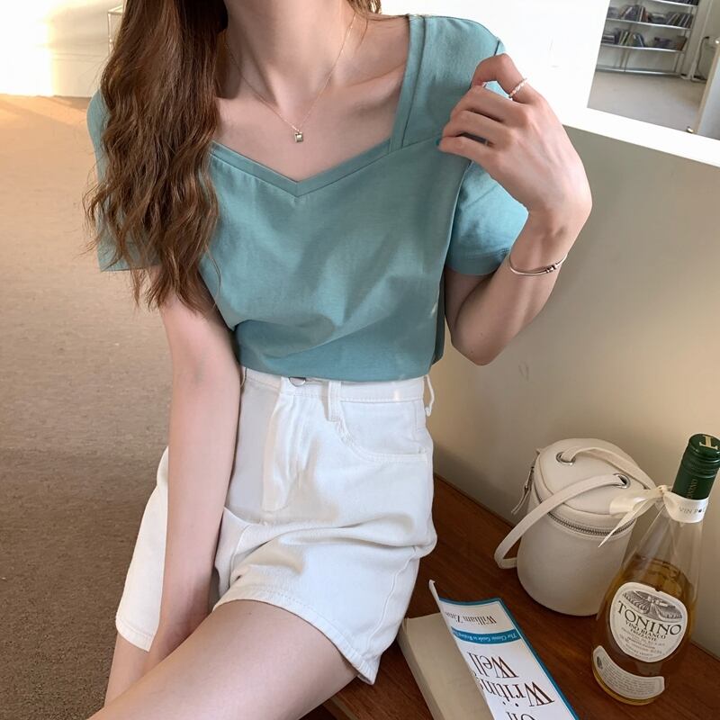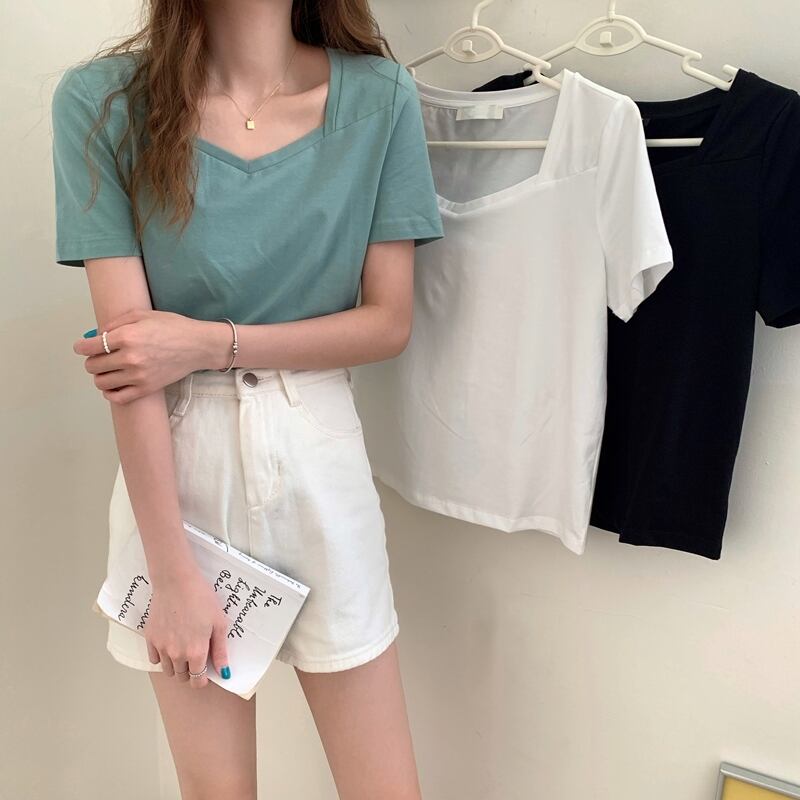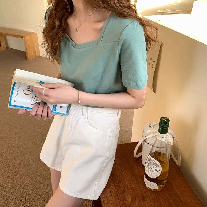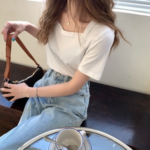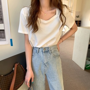 薄手サマースリムホワイトTシャツ トップス 夏物 スクウェア 1号婦人94208011100