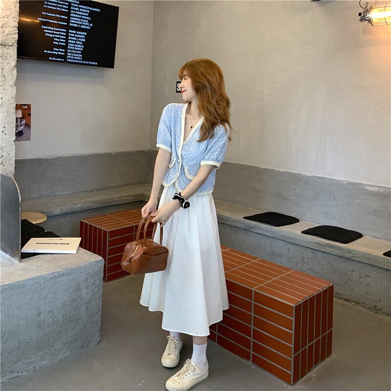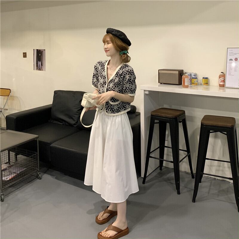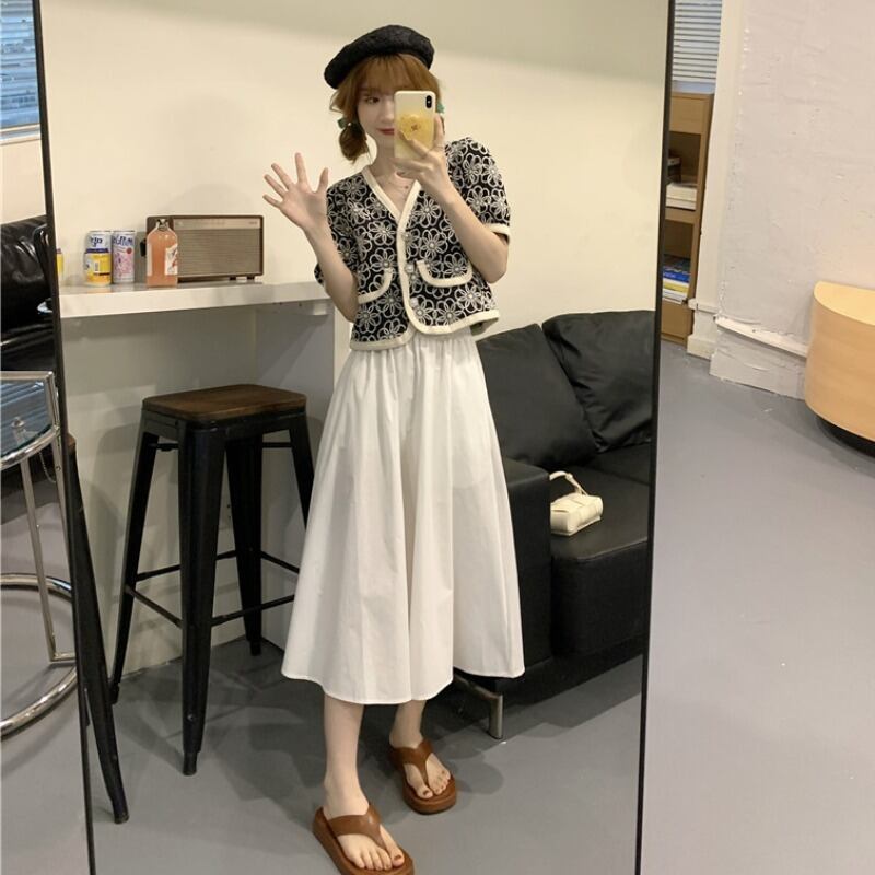 セット サマーレディースショートシャツ ソリッド カラースカート 大人ガーリー スウィート キュート カジュアル 夏物 ピュア ソリッドカラー 1号婦人58357754003