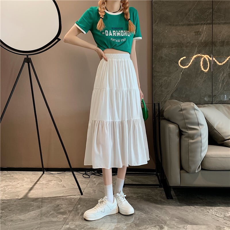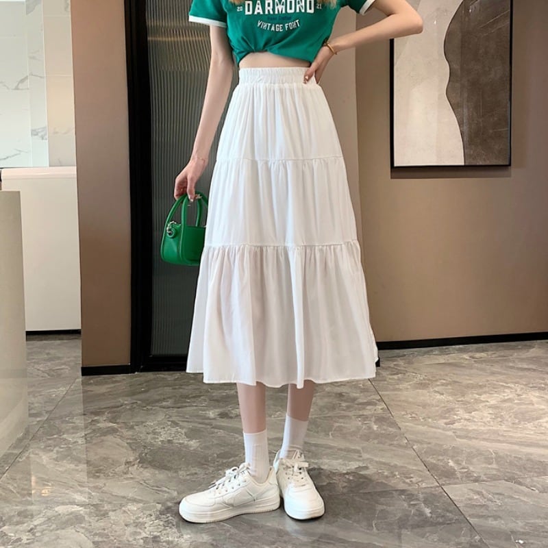 Aラインスカート サマー薄手ハイウェストウェストスリムホワイト 夏物 ステッチ 1号婦人48880433872