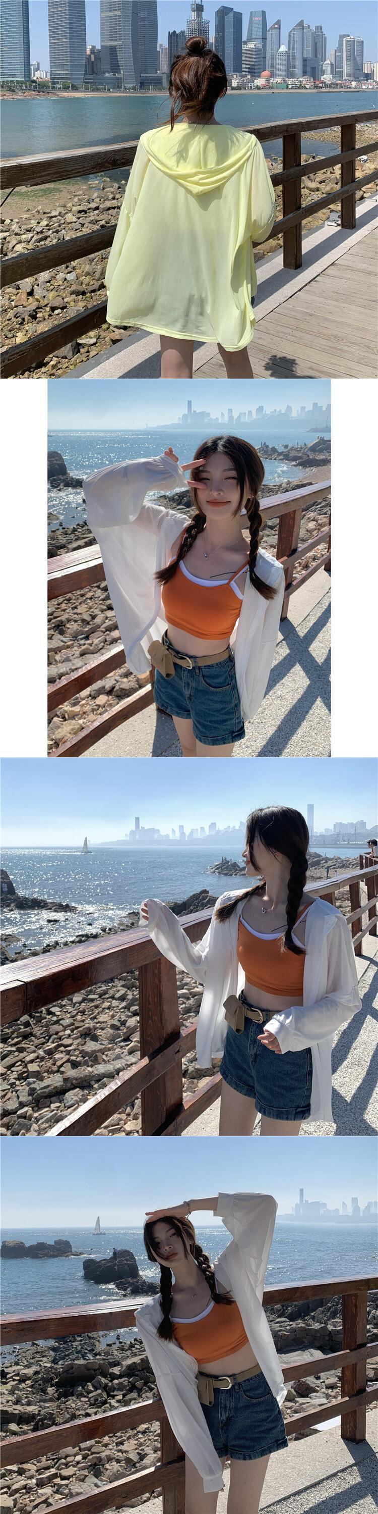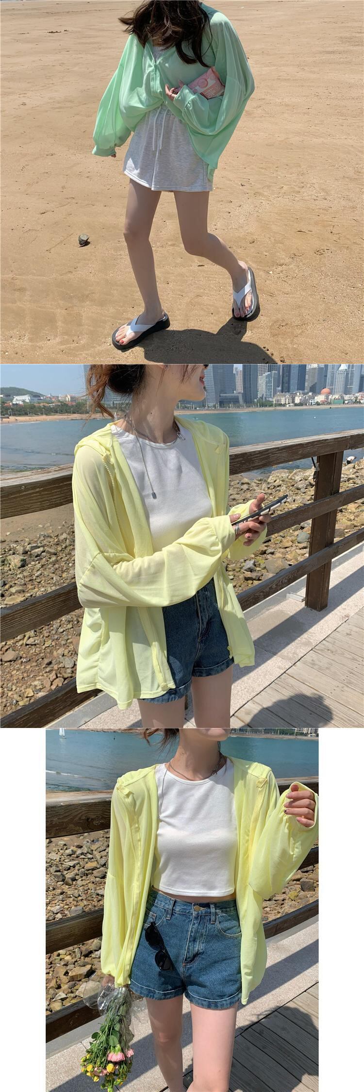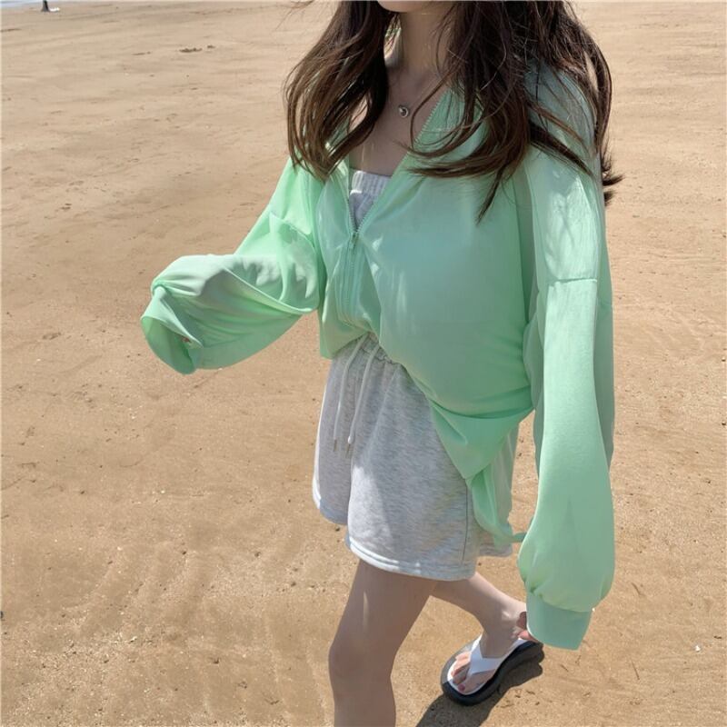 ジャケット 薄手サマーフードホワイトカーディガントップス ルーズ ロング 夏物 1号婦人58780031961