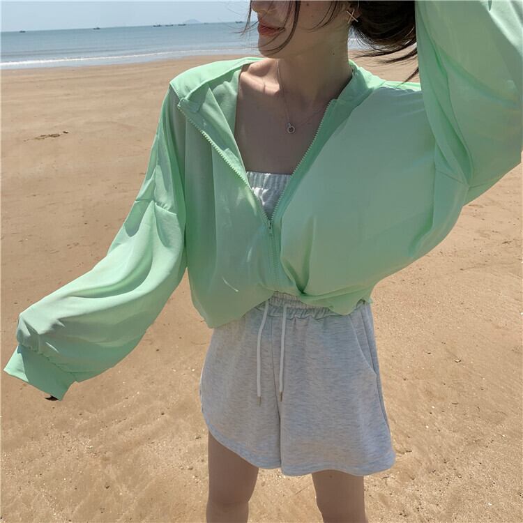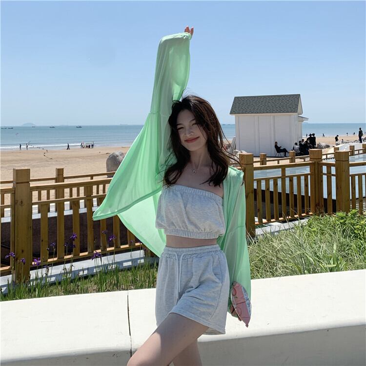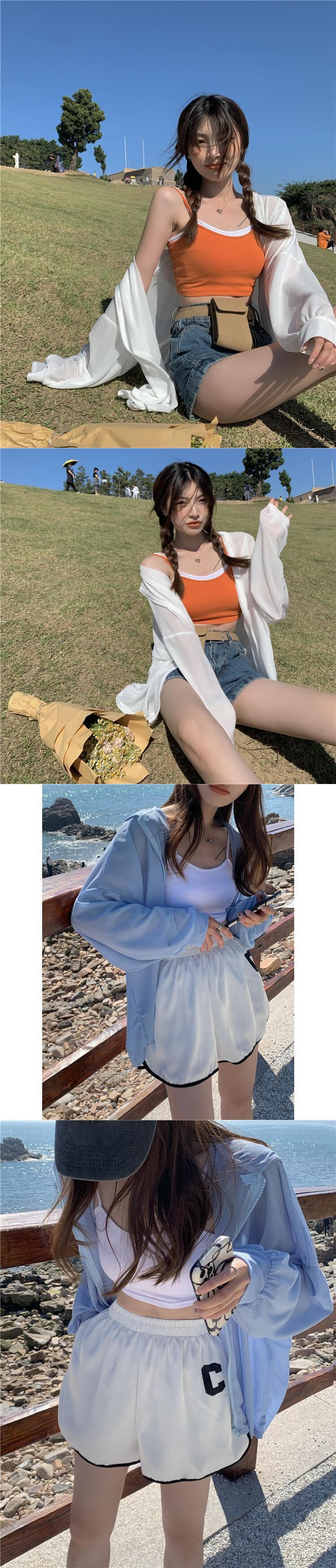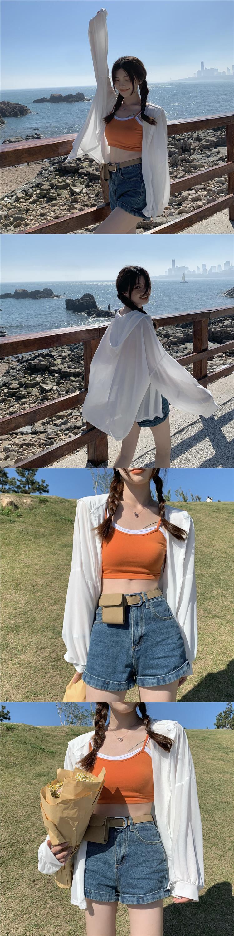 ジャケット 薄手サマーフードホワイトカーディガントップス ルーズ ロング 夏物 1号婦人58780031961
