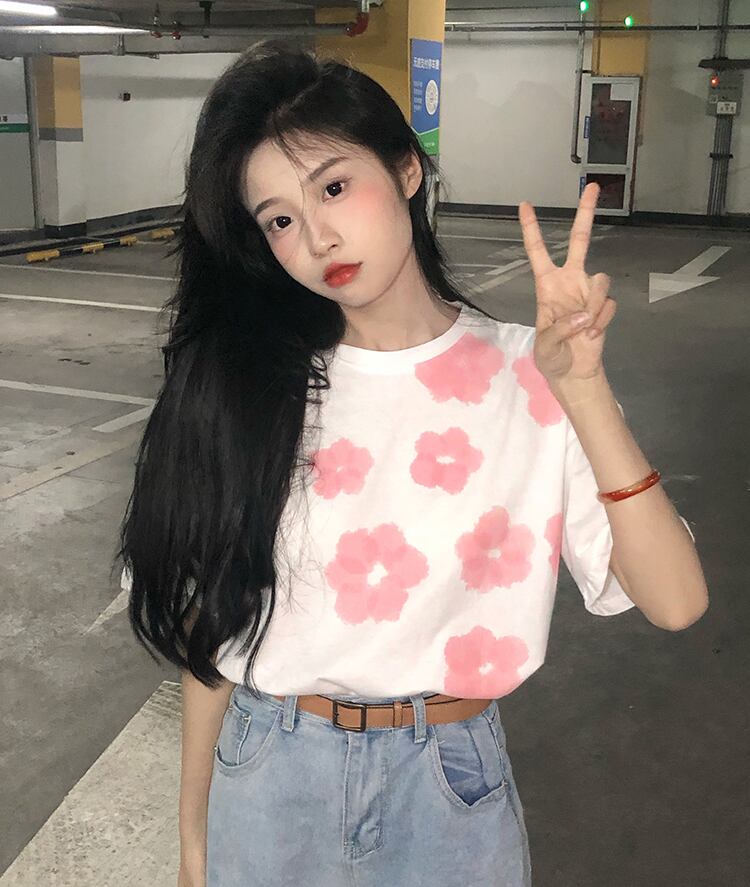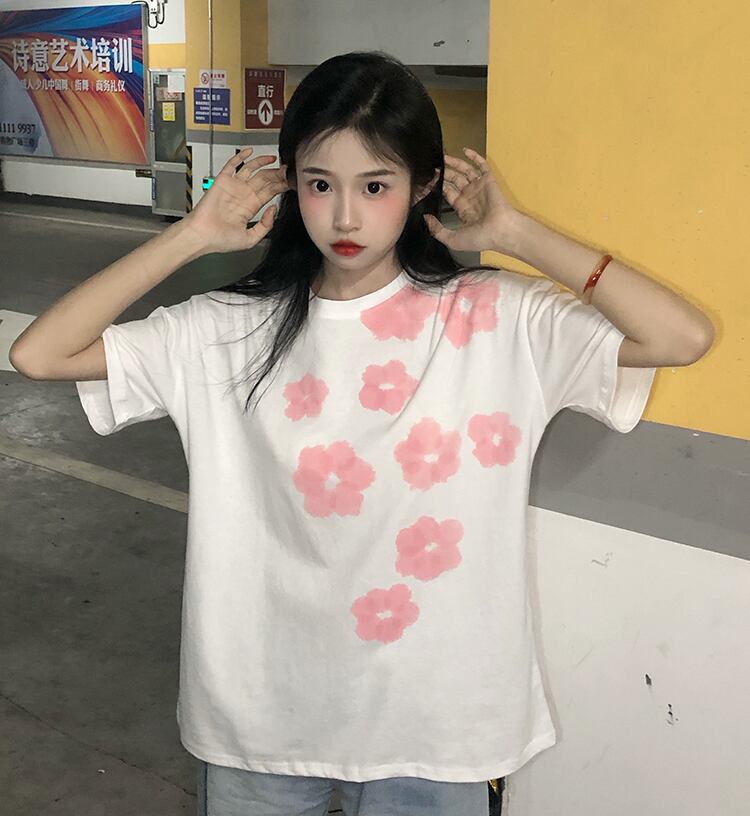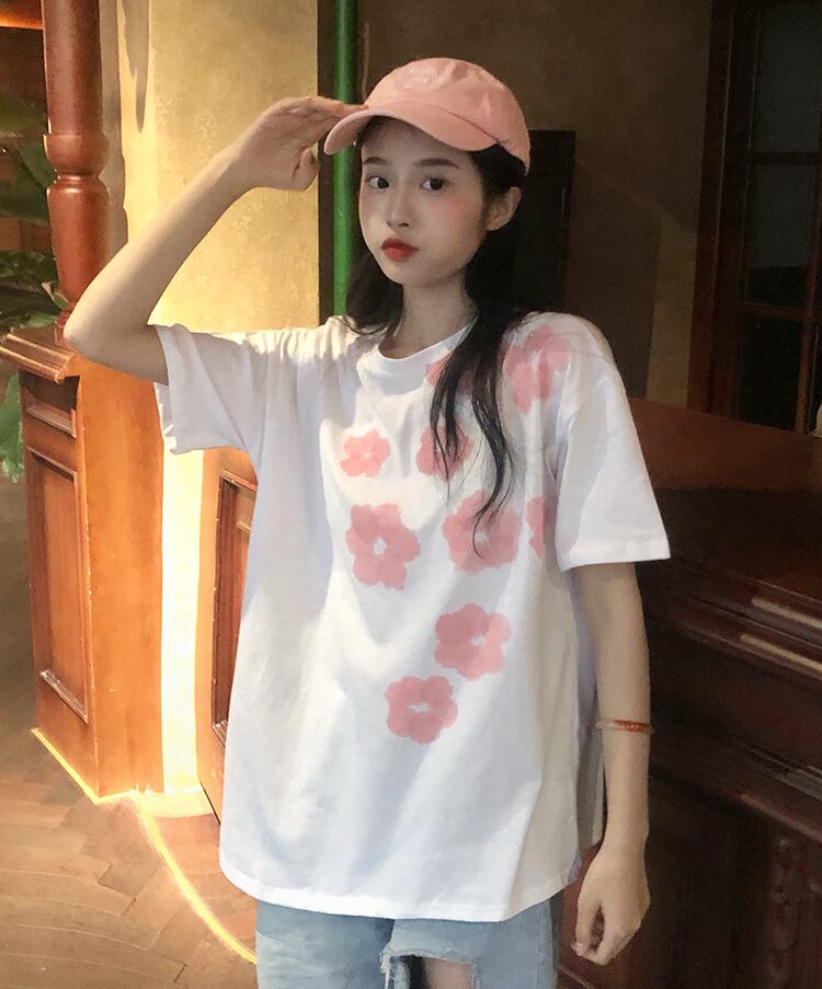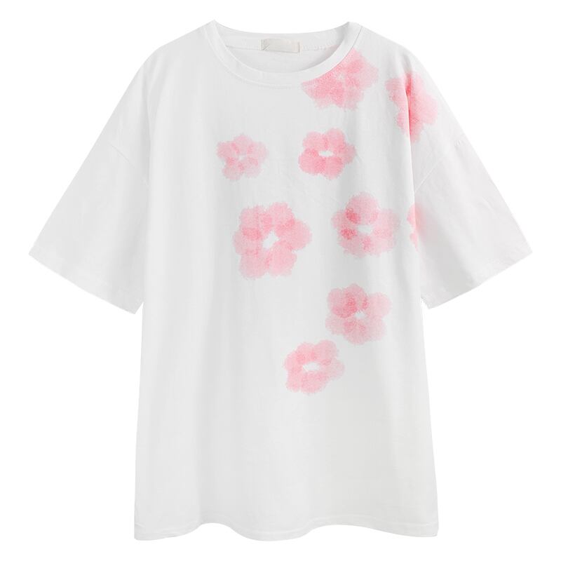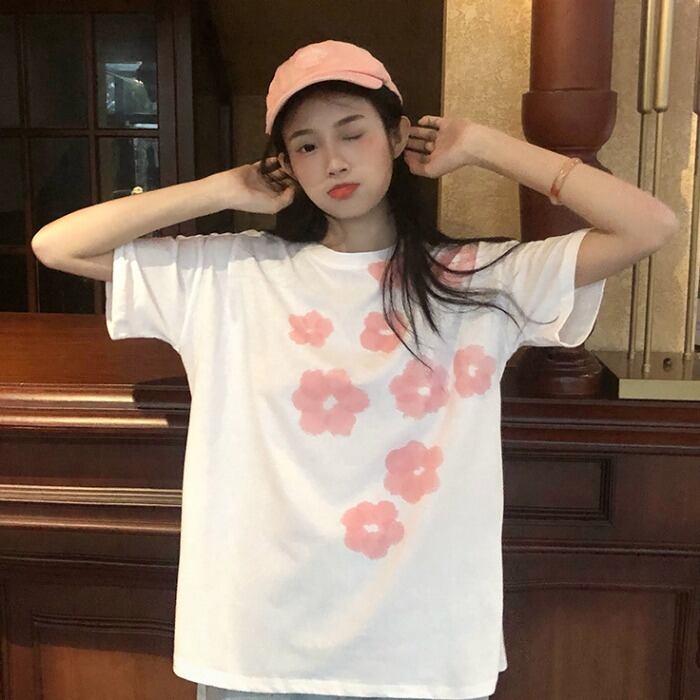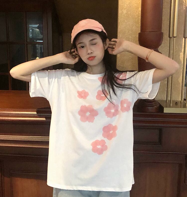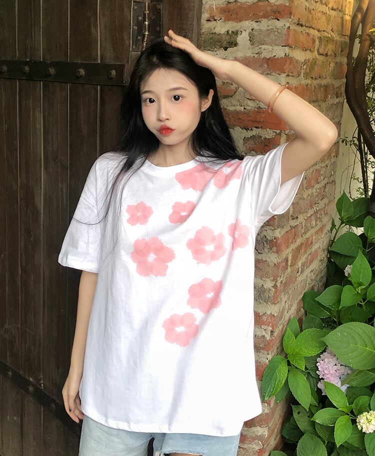 色:ホワイトピンクの花Tシャツ,黒のリトルブルーフラワーTシャツ