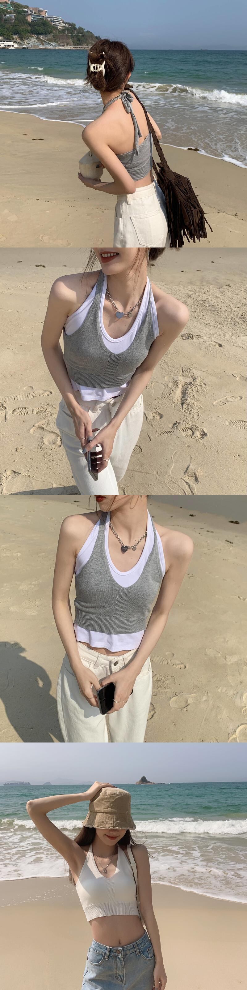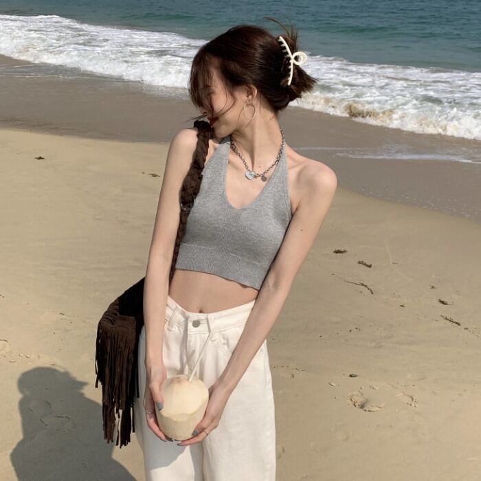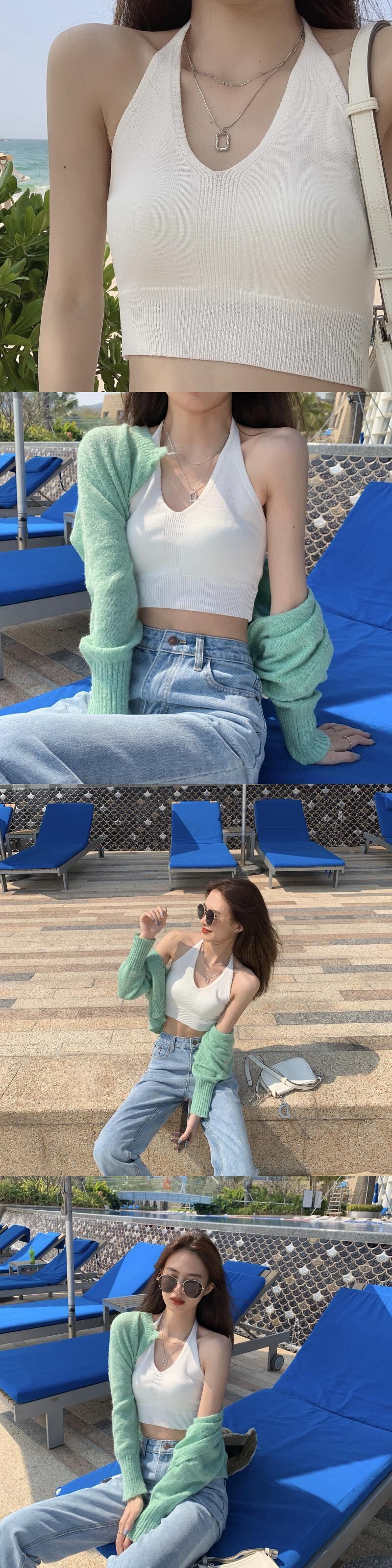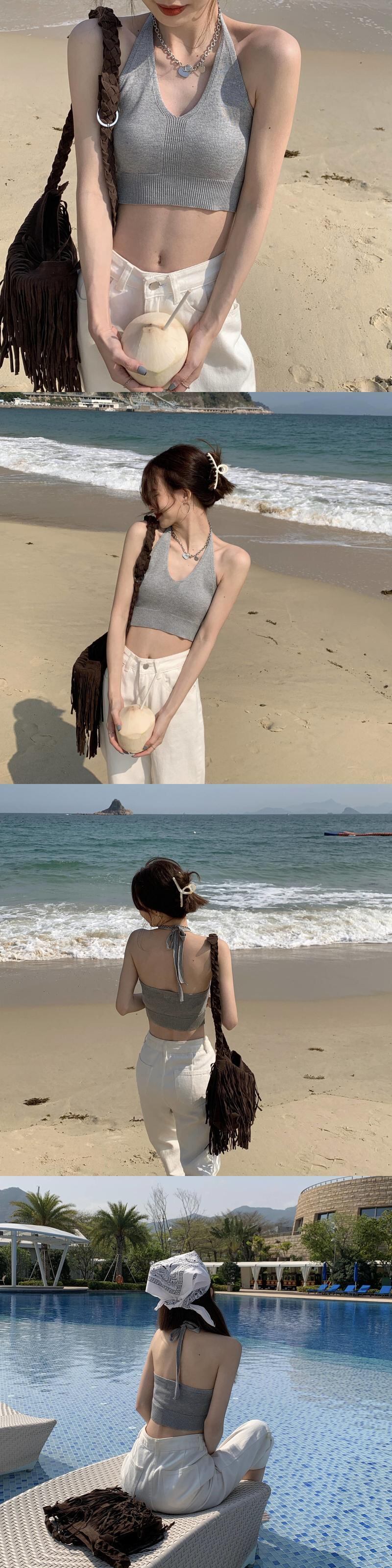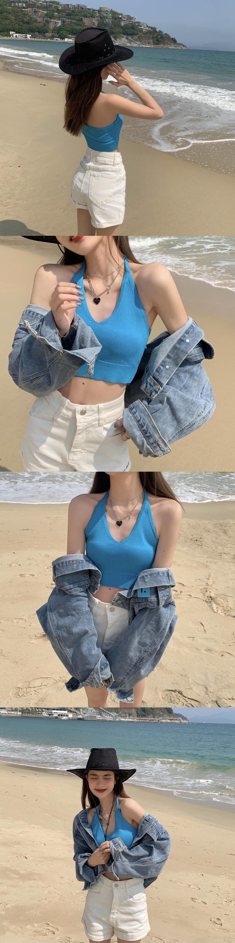 ホワイトホルターサマーショートトップス バック 夏物 1号婦人89682664567