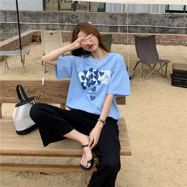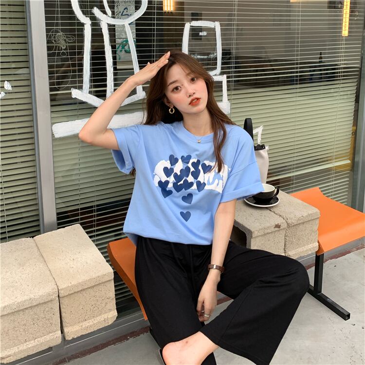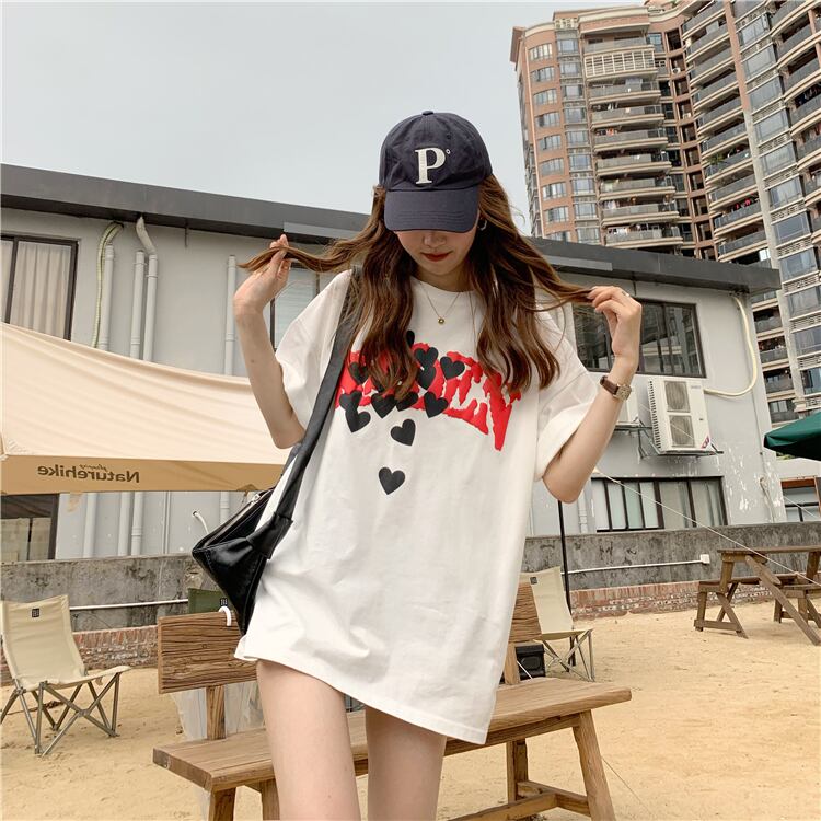 サマートップス 薄手Tシャツ ホワイトプリント柄 大人ガーリー スウィート キュート カジュアル 夏物 1号婦人37142672099