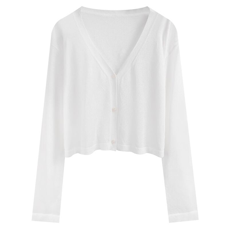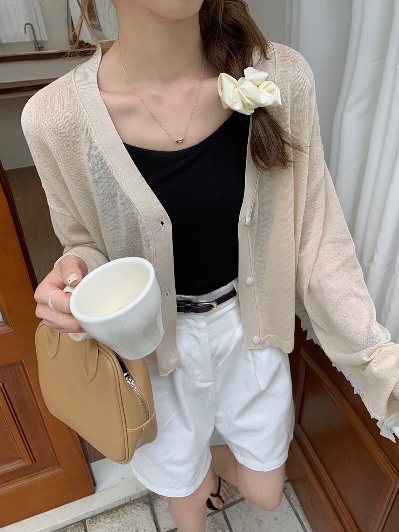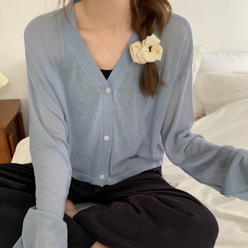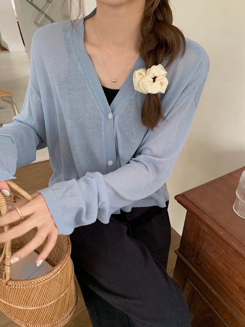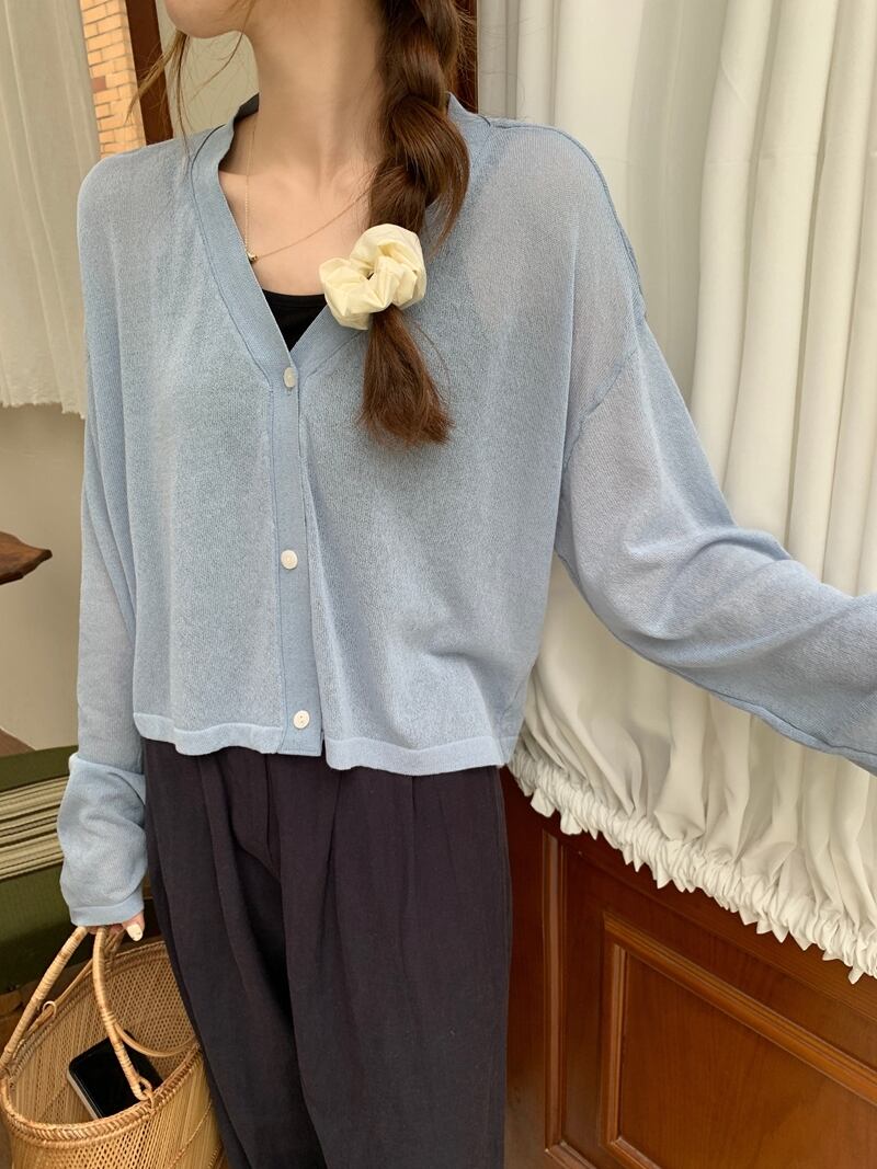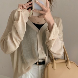 ニットカーディガンサマー薄手ルーズVネックショートブラウス トップス 夏物 1号婦人5414083577