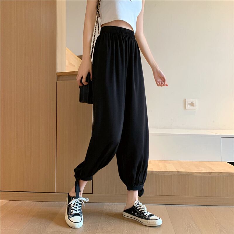 ブラックカジュアルパンツ サマー薄手ウェストハイウェストスリム 夏物 1号婦人30334088380
