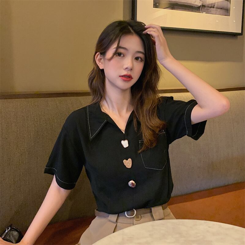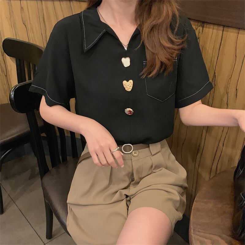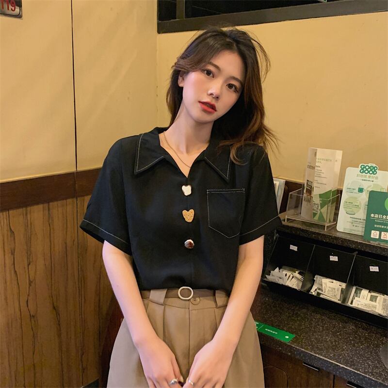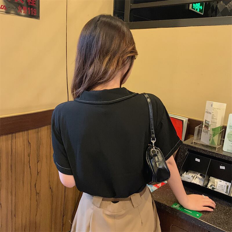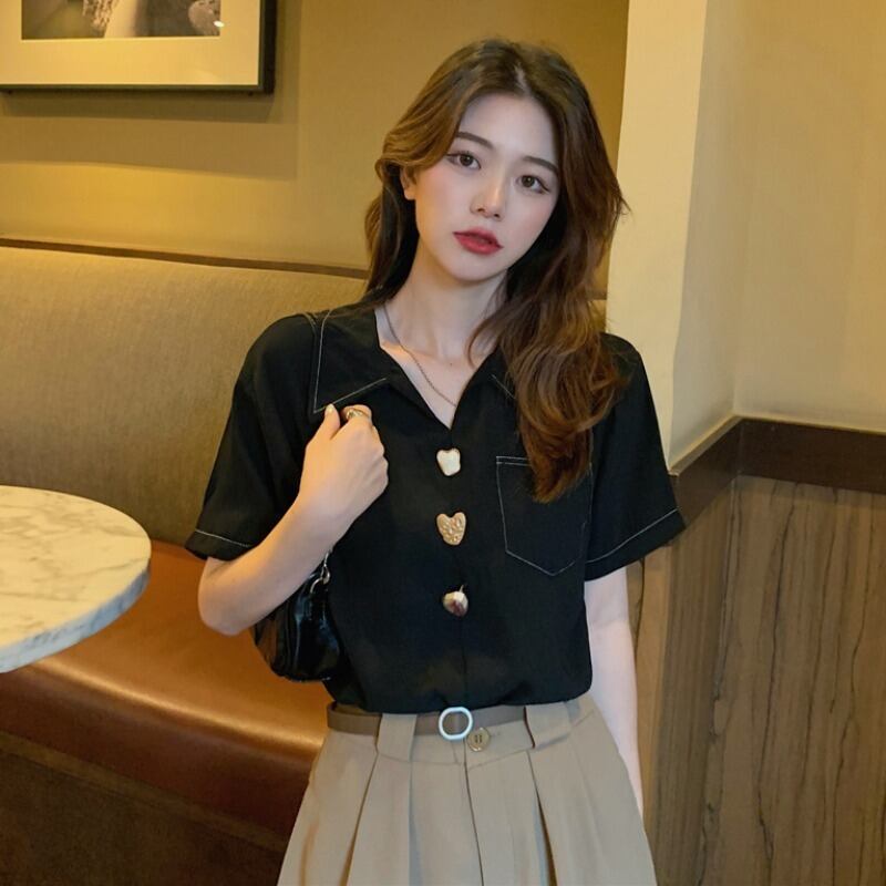 シャツ トップス レディースサマー薄手ルーズVネックブラック 夏物 1号婦人18817525533