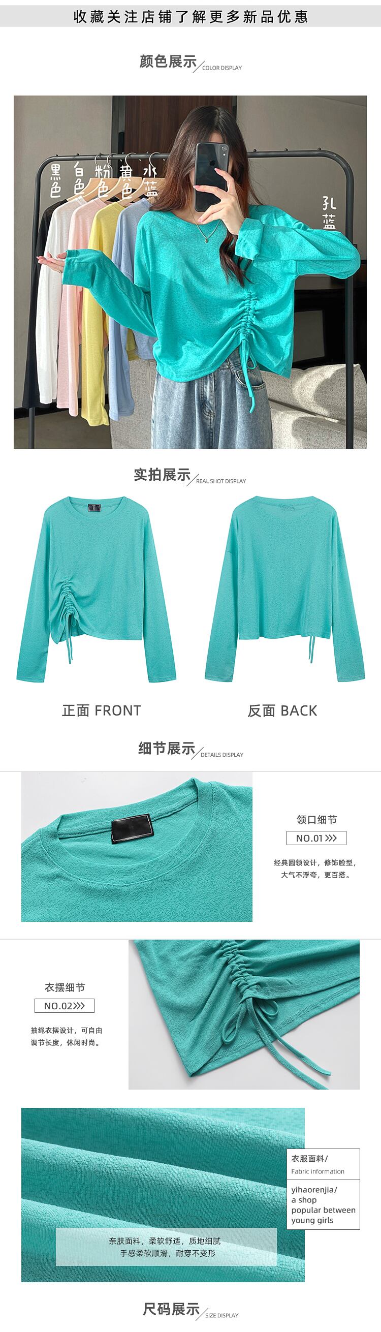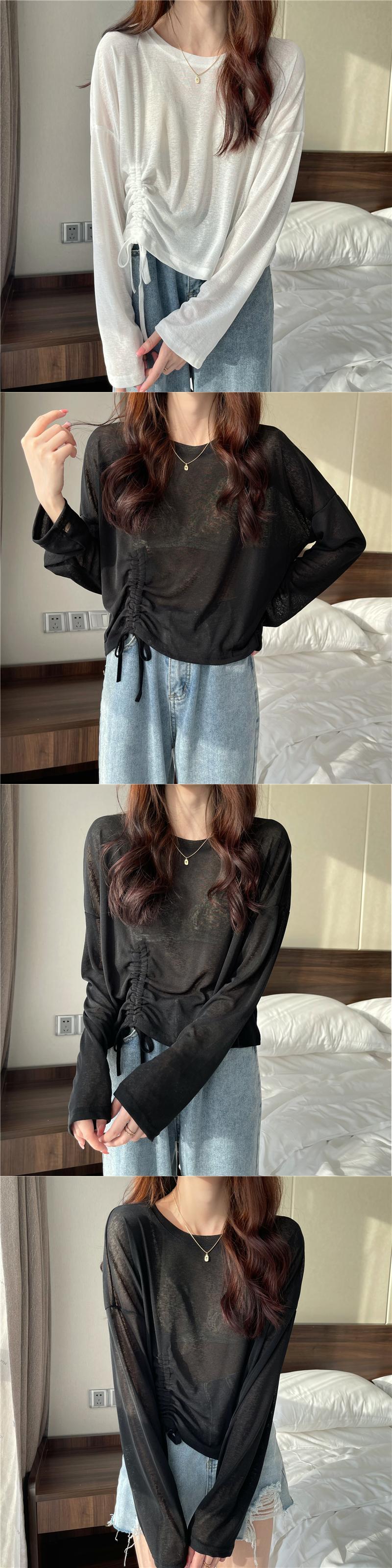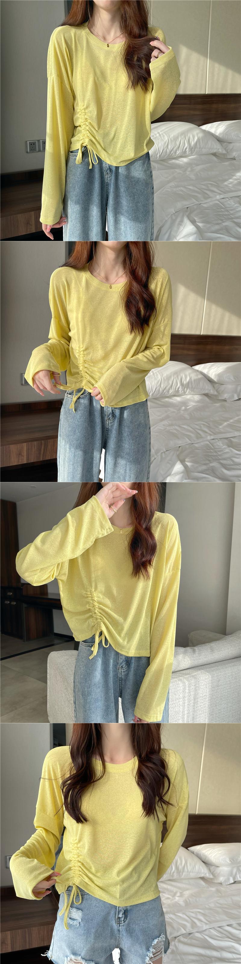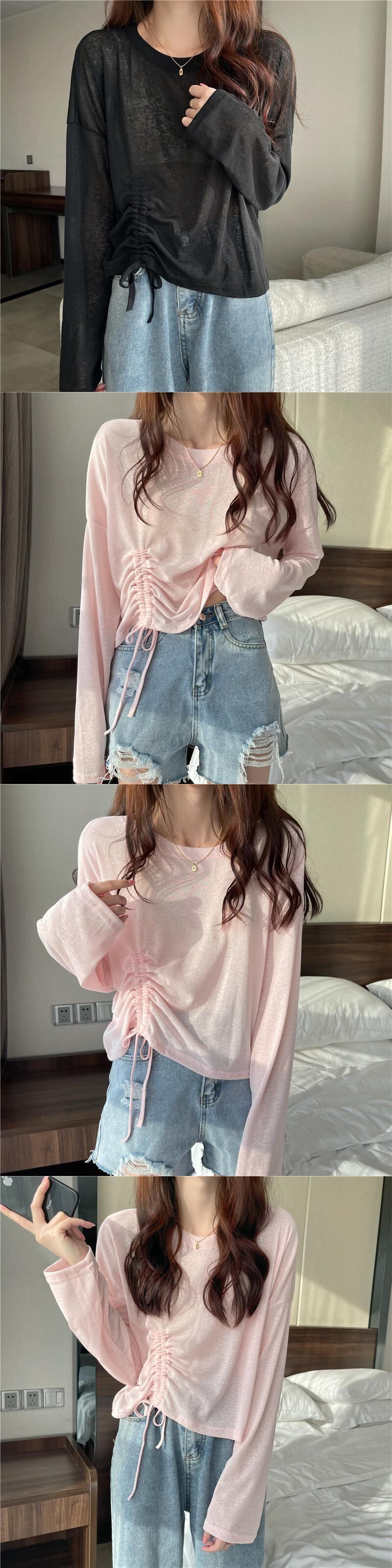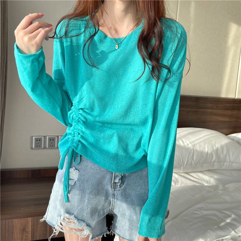 Tシャツ 薄手サマーカジュアルギャザーブラウス ルーズショートトップス ロング 夏物 1号婦人41044700785