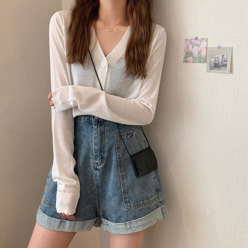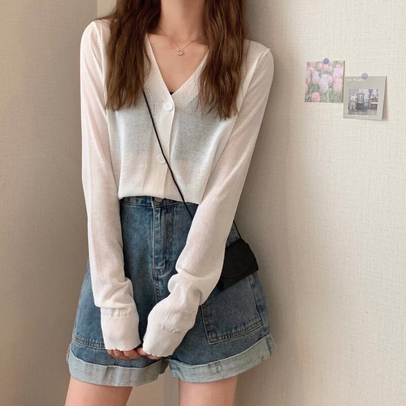 ニットセーター レディースサマー薄手ルーズVネックカーディガンブラウス ロング 夏物 シルク 1号婦人85696354244