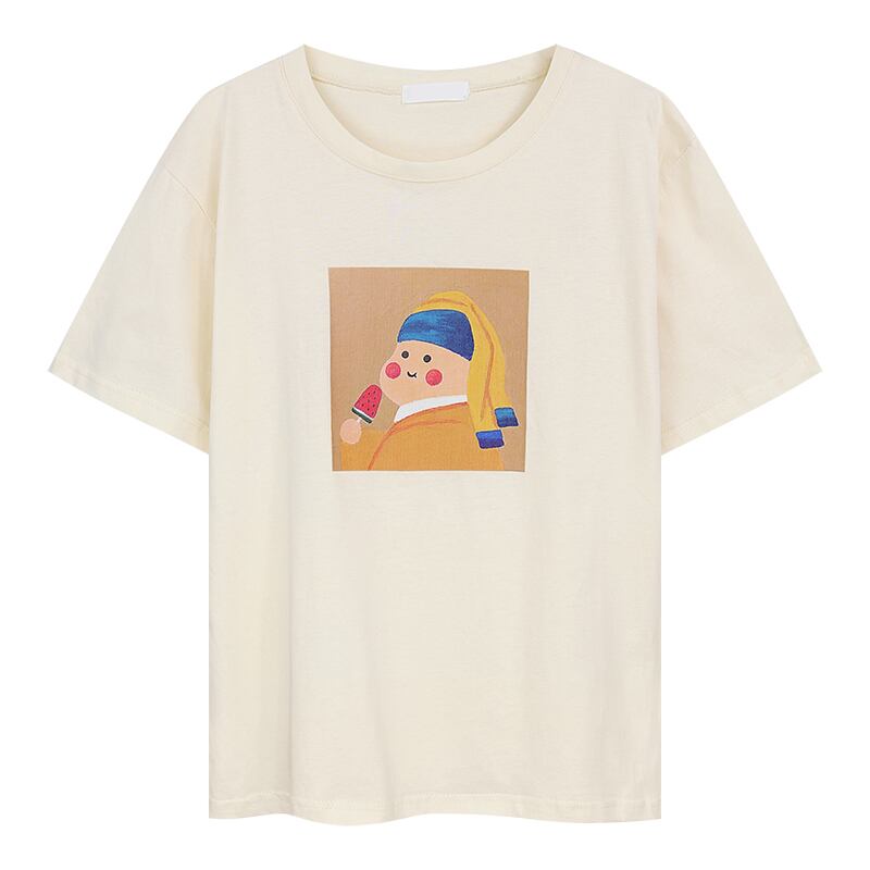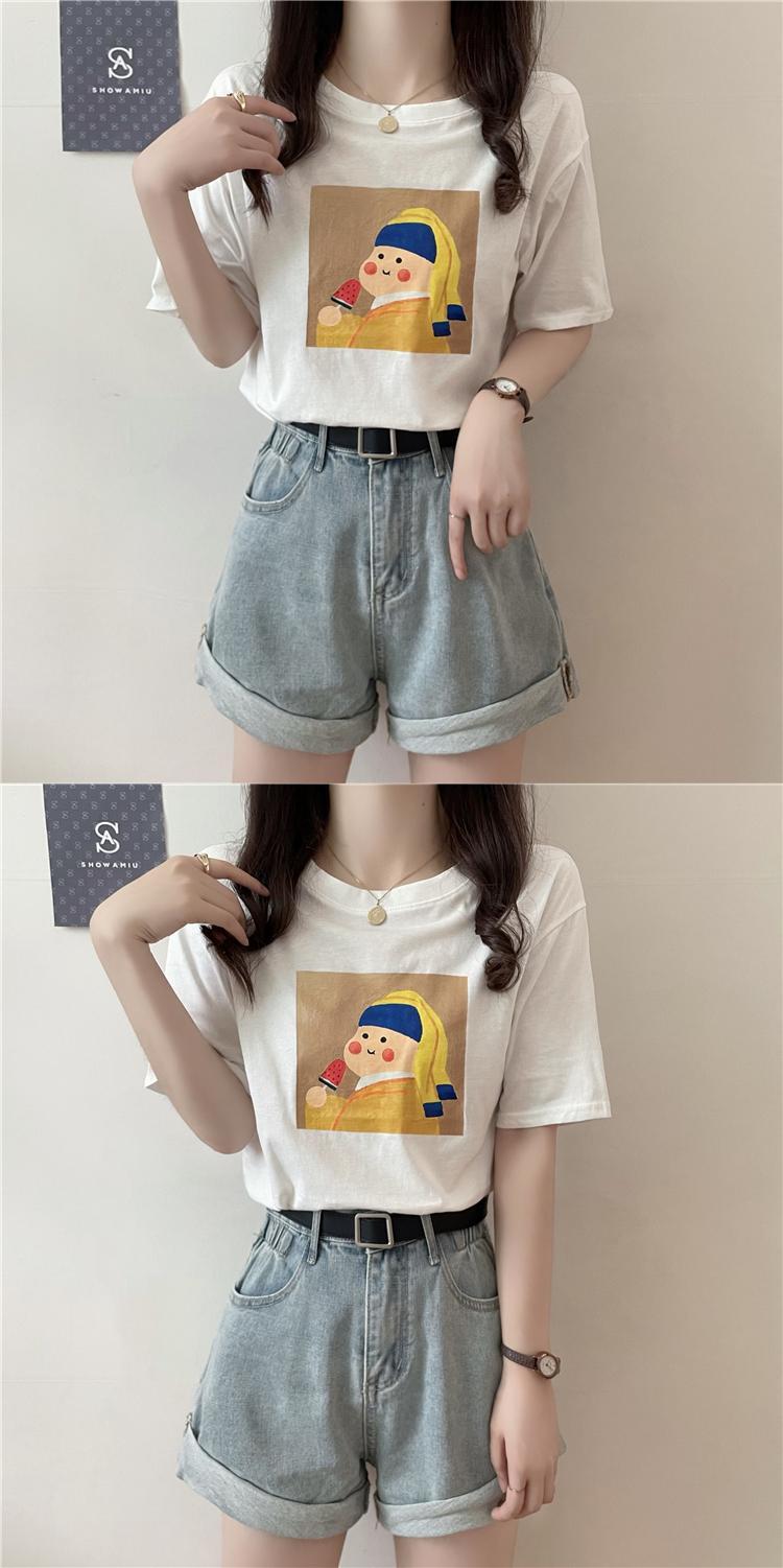 Tシャツ 薄手サマープリントラウンドネックルーズトップス 夏物 Oネック 1号婦人75836233211