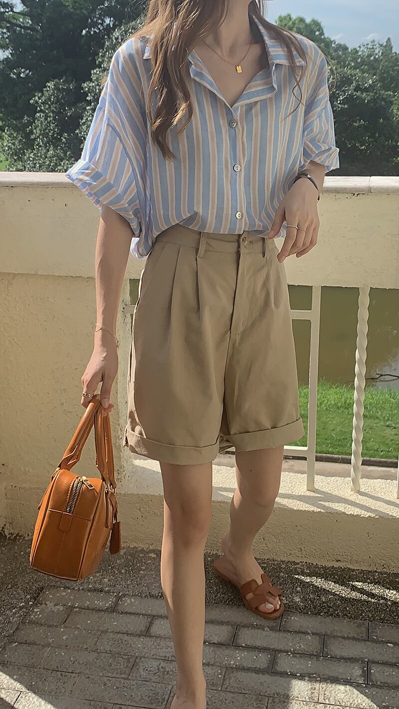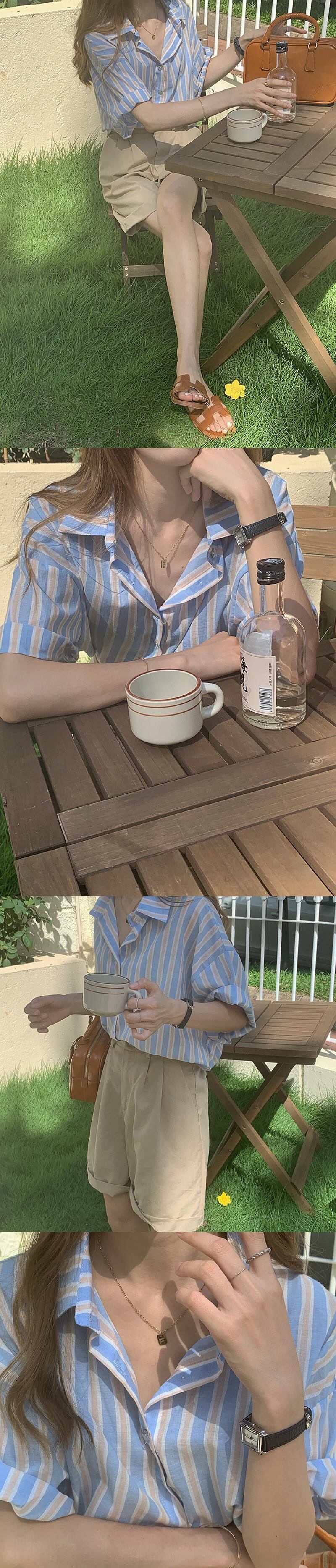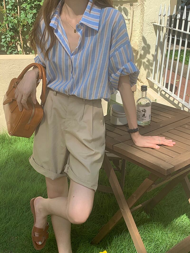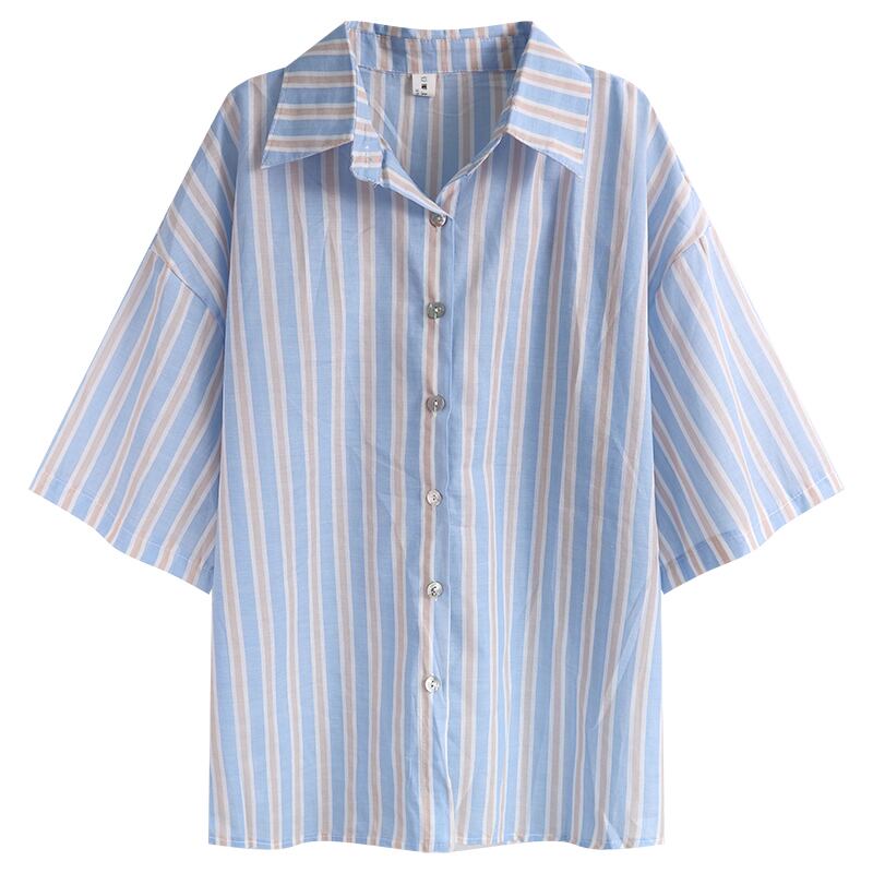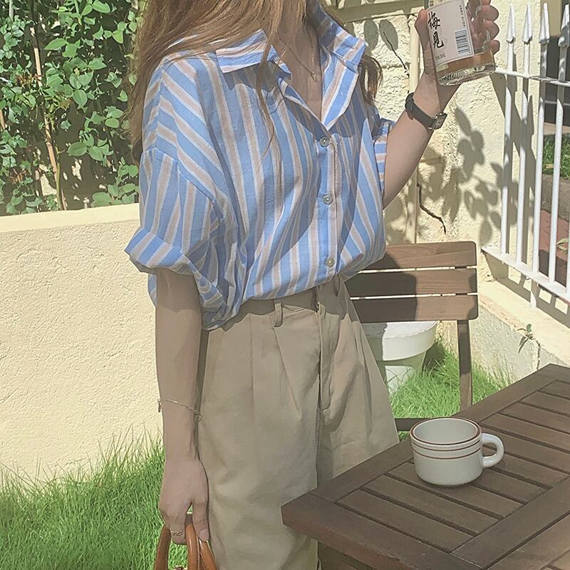 ストライプシャツ トップス サマー薄手スタンダードルーズ レトロ 夏物 1号婦人61001563943