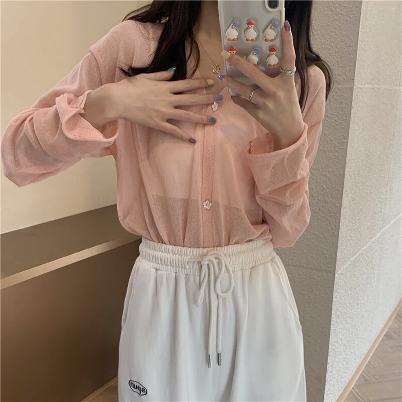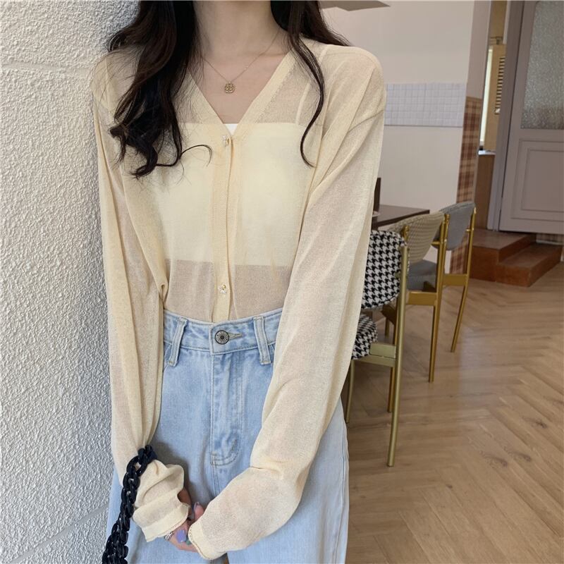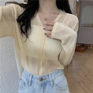 ルーズセーター サマー薄手スタイルVネックカーディガントップス ロング 夏物 シルク 1号婦人63348308357