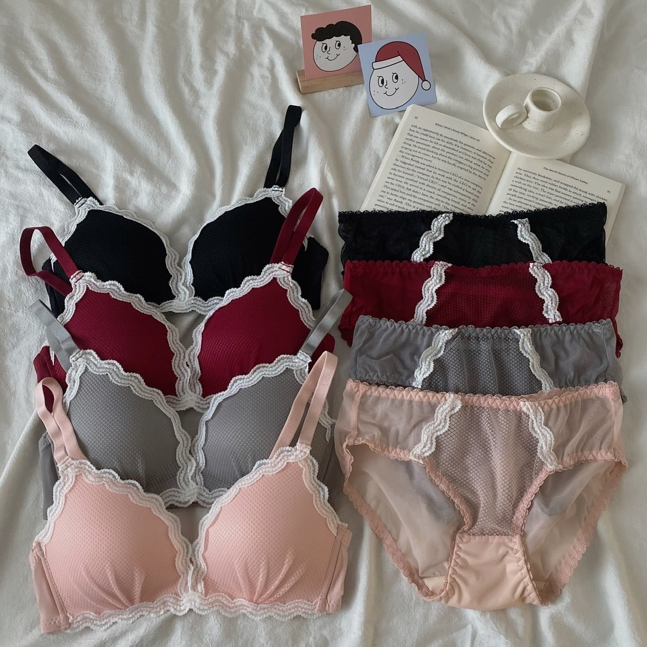 色:黒下着シングル,グレーの下着ワンピース,ピンクの下着ワンピース,ブルゴーニュ一枚の下着,黒下着セット,グレーの下着セット,ピンクの下着セット,ブルゴーニュの下着セット
