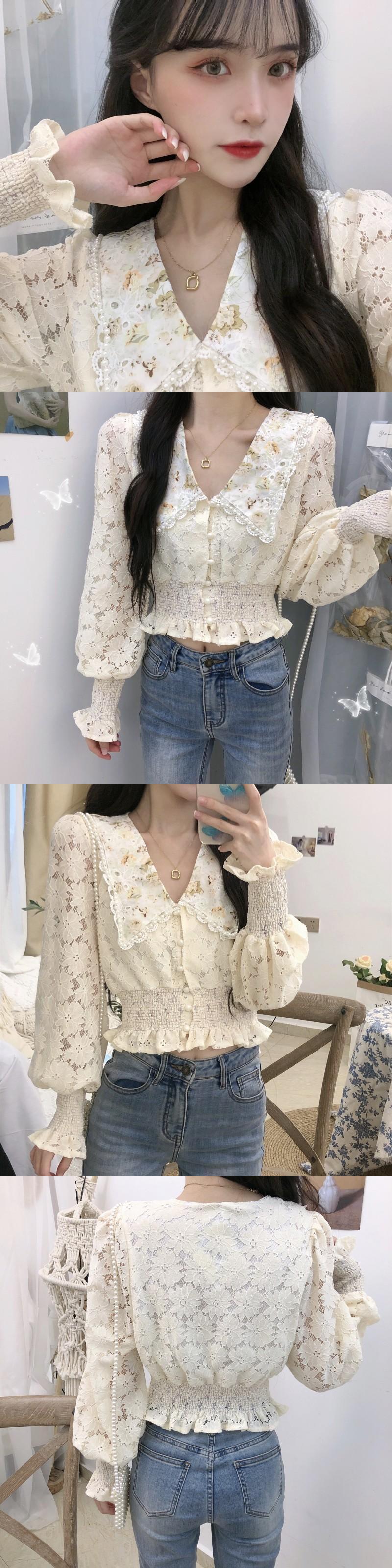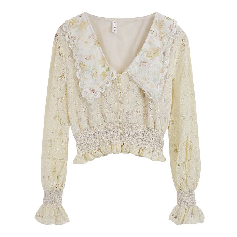 レースシャツ サマースタイルブラウス ウェストシフォン ロング 夏物 1号婦人57253073923