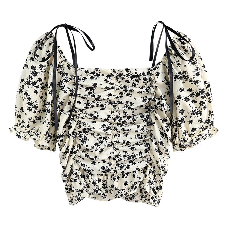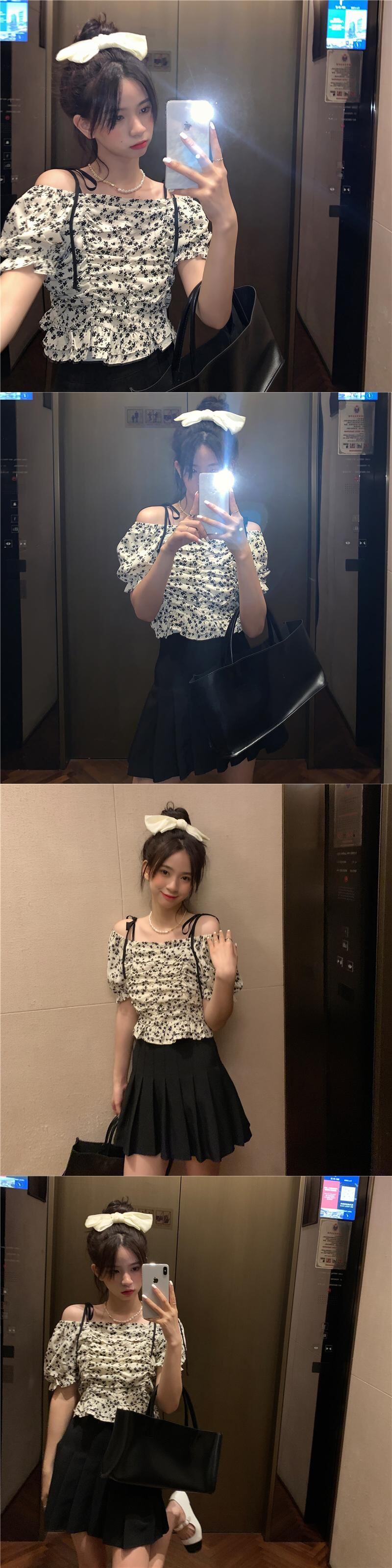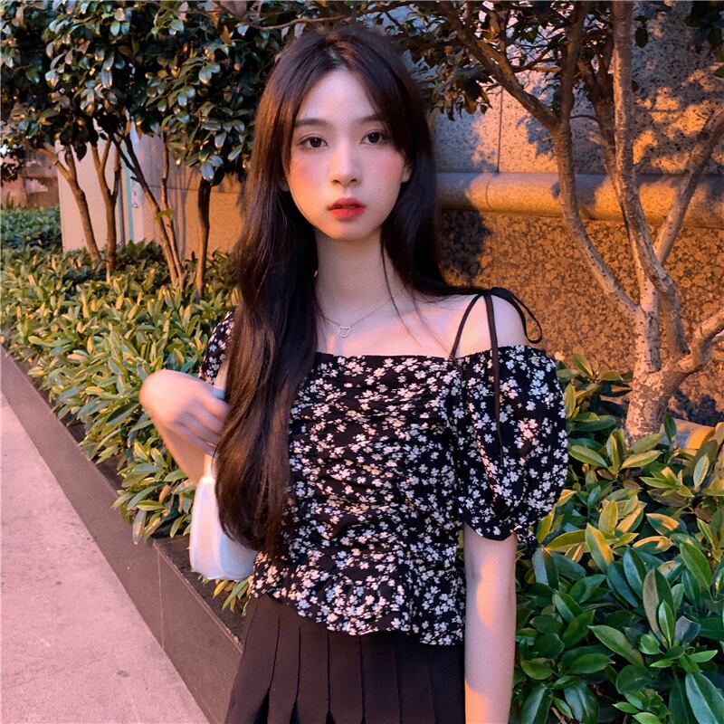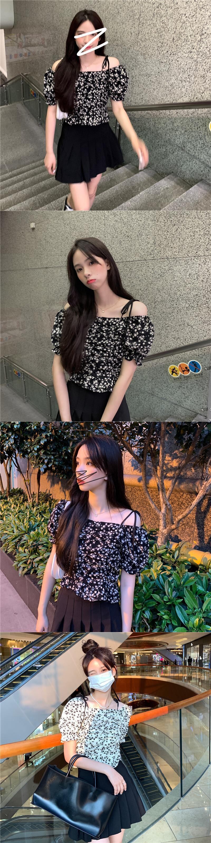 ショートフローラルブラウス サマーシフォンシャツ 夏物 花柄 オフショルダー 1号婦人75155106360