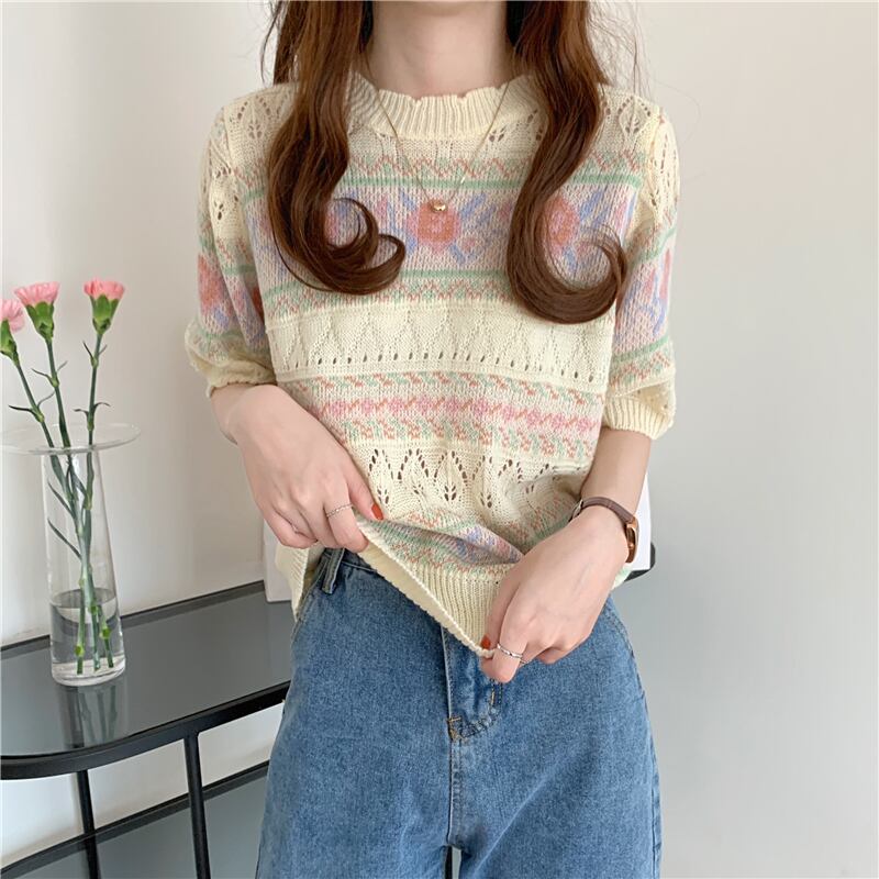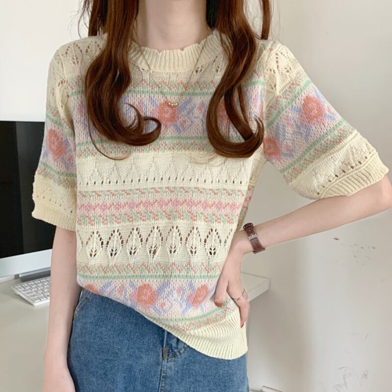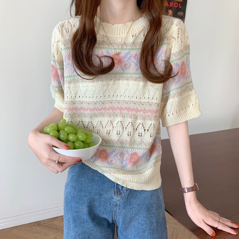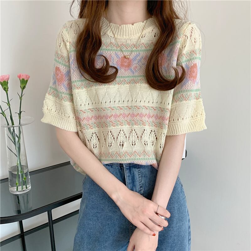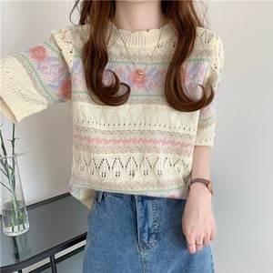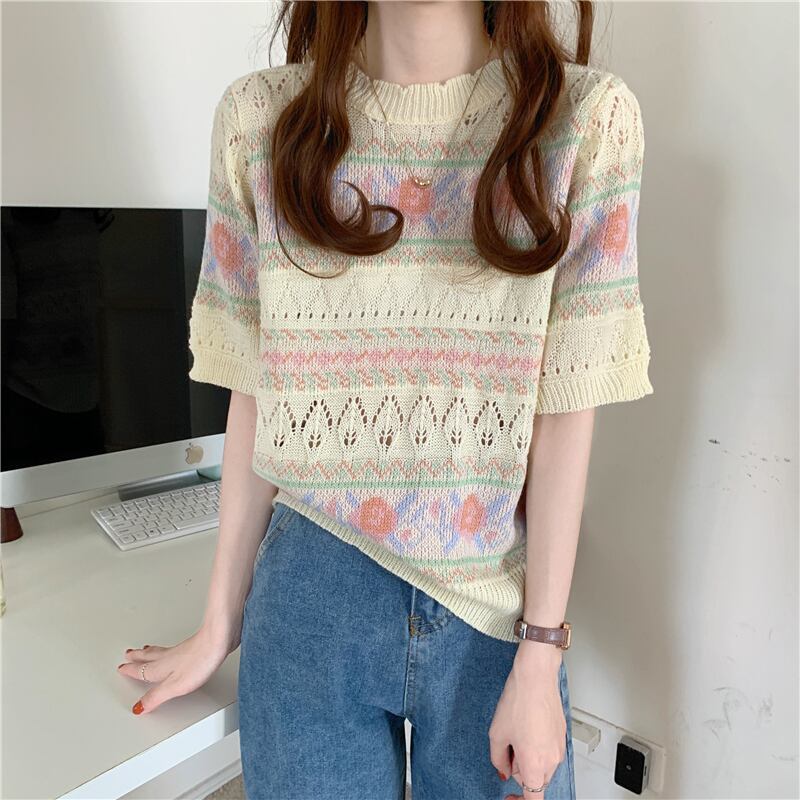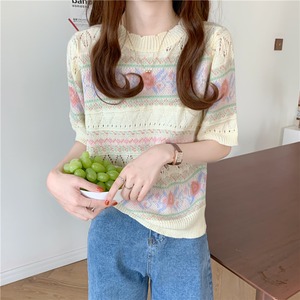 サマーショート薄手ニット 大人ガーリー スウィート キュート カジュアル 夏物 Tシャツ 1号婦人19885282927