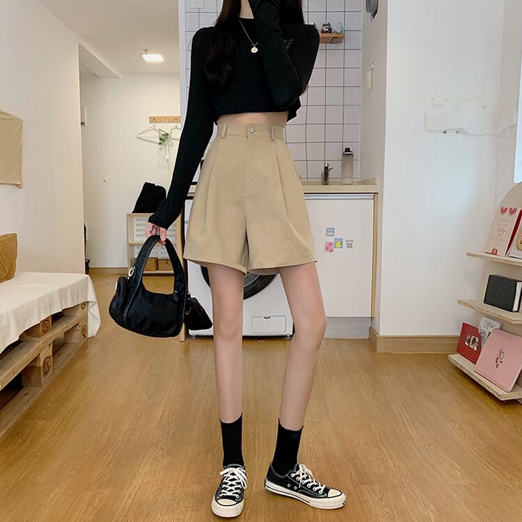 ブラックパンツ サマーハイウェストルーズ薄手ショート 夏物 1号婦人39286613492