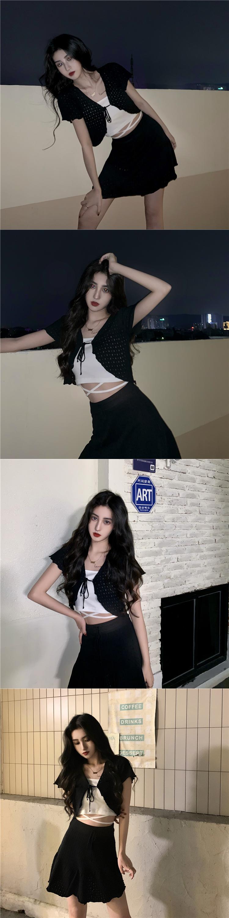 ショートスプリングサマーブラックノースリーブシャツ 春物 夏物 1号婦人22758839519