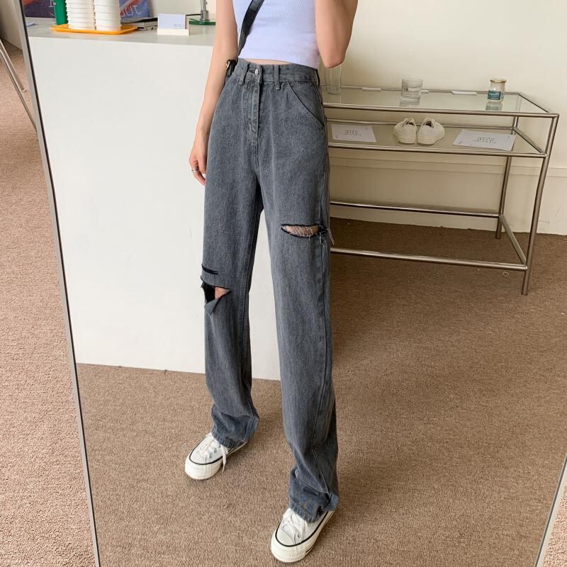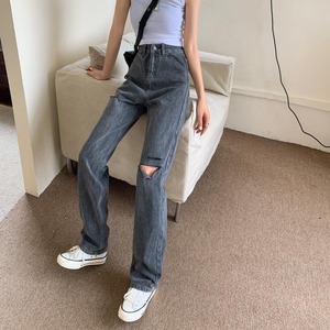 サマージーンズ ハイウェストルーズパンツ 薄手 夏物 1号婦人40418179612