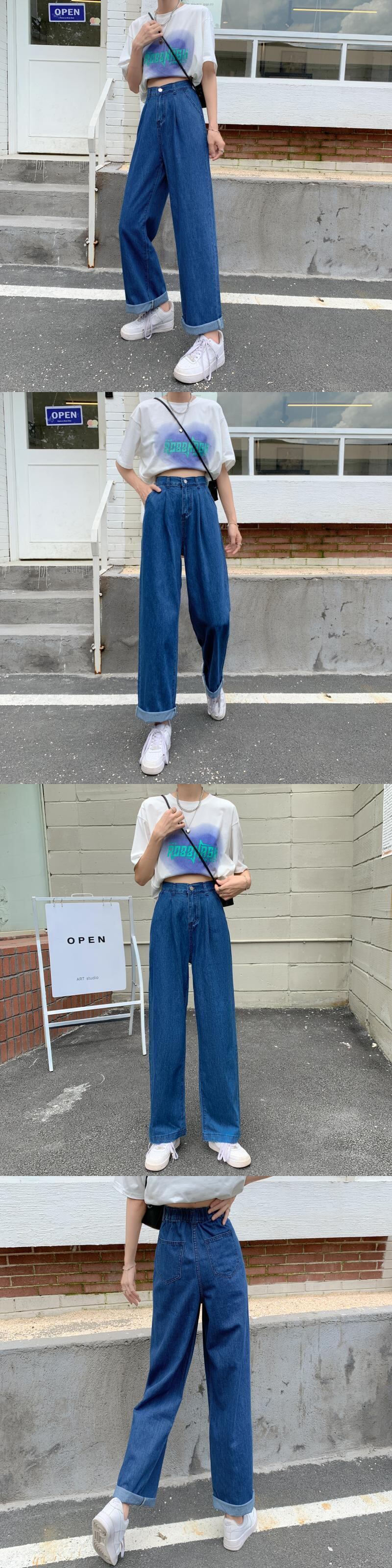 ジーンズ サマー薄手ハイウェストウェストパンツ レッドルーズワイドレッグロング 夏物 ワイドパンツ 1号婦人57670910461